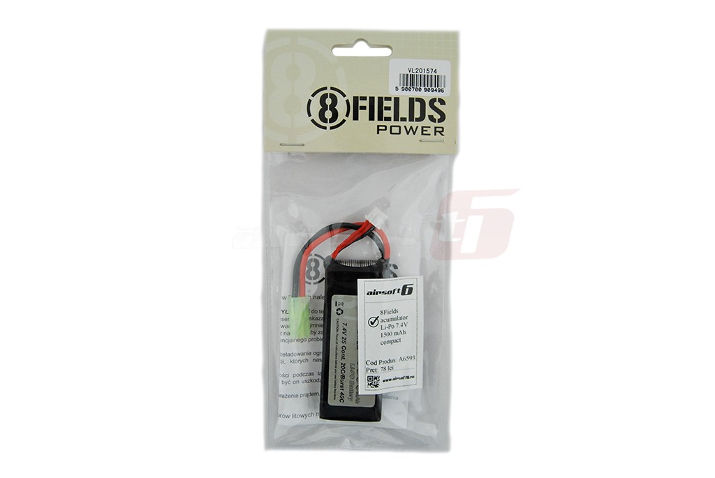 Acest acumulator LiPo are 2 celule unite intr-un ansamblu compact de forma paralelipipedica. Tehnologia acumulatorului permite dimensiuni foarte reduse ale intregului ansamblu, astfel montarea in spatii foarte reduse destinate bateriei este posibila. Descarcarea acumulatorului de 20C permite o furnizare de curent suficienta pentru a satisface necesitatea de curent a replicii.