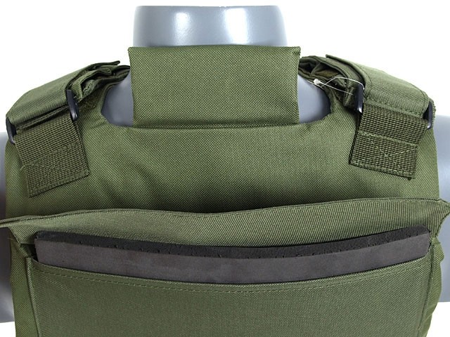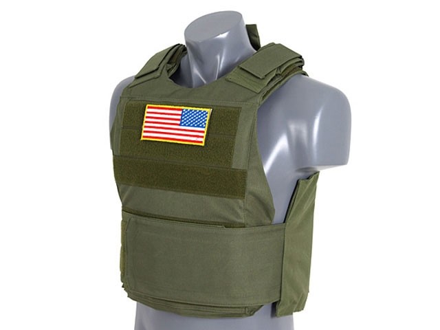 Vesta este fabricata din nylon 600d, sectiunile laterale si umerii permit reglarea vestei pe inaltime respectiv latime ele fiind capitonate cu material rigid pentru protectie. Confortul din interior este sporit de materialul moale.