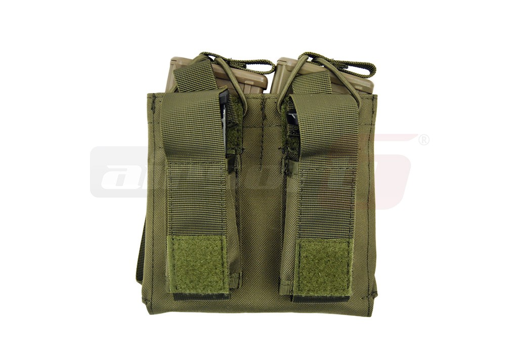 Acest buzunar este special creat pentru a putea fi atasat platformelor cu prindere de tip Molle. Acest sistem de prindere este special conceput pentru a asigura foarte bine legatura intre platforma si accesorii. Materialele folosite sunt de calitate iar cusaturile sunt rezistente. Fiecare buzunar poate gazdui 1 incarcator de tip M4/M16 si 2 incarcatoare de pistol. Buzunarele mari asigura incarcatoarele cu ajutorul unei chingi elastice iar buzunarele mici cu ajutorul unor capace din nylon prevazute cu arici. Acest buzunar utilitar este ideal pentru accesorizarea vestelor sau a centurilor in ideea de a putea mari cantitatea de incarcatoare ce poate fi carata.