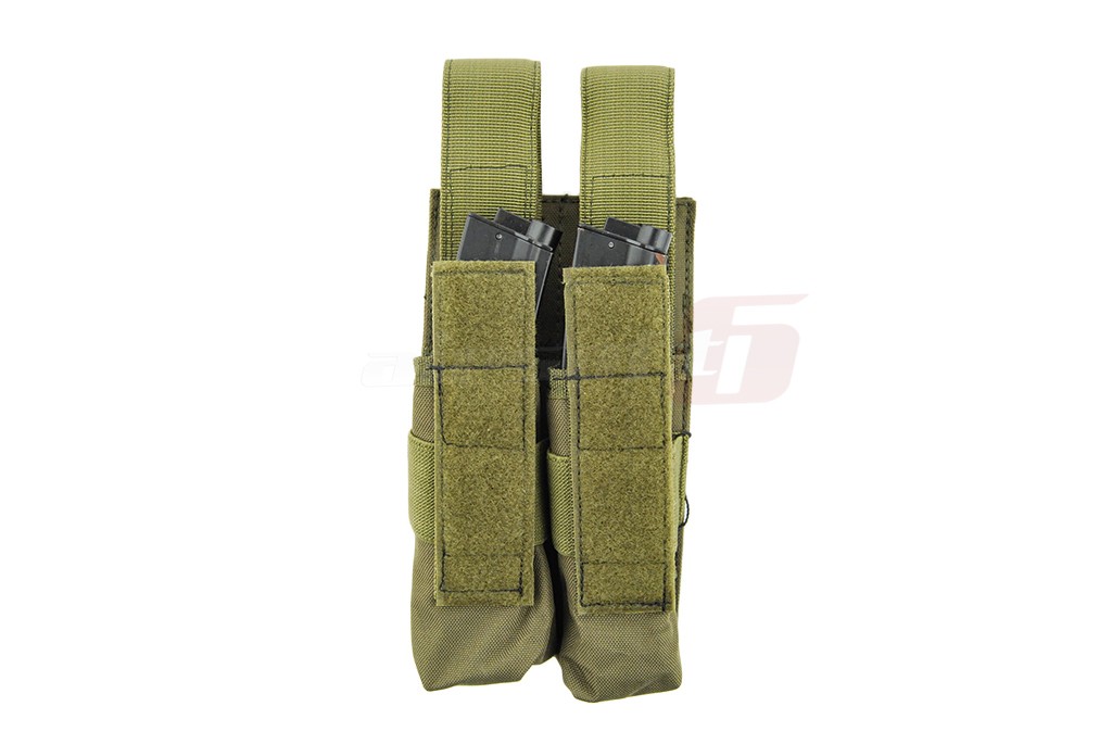 Buzunar dublu pentru incarcatoare MP5. In aceste buzunare pot incapea 4 incarcatoare MP5. Acest buzunar este prevazut cu sistem de prindere molle, astfel poate fi montat pe vestele sau centurile tactice prevazute cu acest sistem de prindere. Este fabricat din nylon impletit rezistent iar capsele sunt din metal. Clapele ce asigura incarcatoarele in buzunar pot fi pozitionate si fixate in partea din spate al compartimentului incarcatorului pentru a avea un acces mai rapid la incarcatoarele sustinute. Pentru o mai buna fixare exista si un sistem de benzi elastice ce poate impiedica pierderea incarcatoarelor in timpul actiunii.