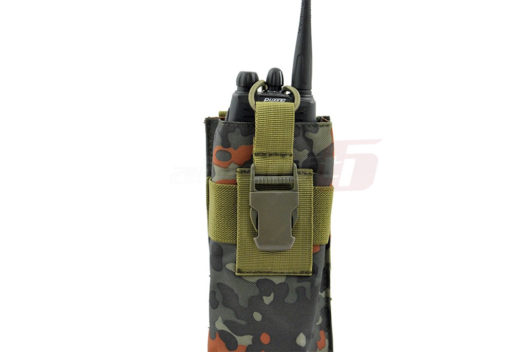Acest buzunar fabricat de 8Fields este destinat asigurarii statiilor de emisie/receptie portabile. Este fabricat din nylon 600D dublu captusit pentru protectia statiei impotriva socurilor mecanice si a temperaturilor scazute. Dimensiunile sale permit transportul aproape oricarui tip de statie portabila. In partea laterala este prevazut cu un orificiu pentru a putea conecta o casca destinata statiei. In partea superioara a buzunarului exista un sistem format din benzi elastice pentru fixarea frma a statiei, asigurate cu carabina. In partea sperioara a buzunarului exista benzi elastice pentru fixarea ferma a statiei in interiorul sau. Un aspect important ce trebuie mentinut este factul ca sistemul de prindere al buzunarului este de tip molle, asadar acest buzunar poate fi pozitionat oricunde exista o astfel de prindere, pe vesta, pe centura sau pe rucsac.