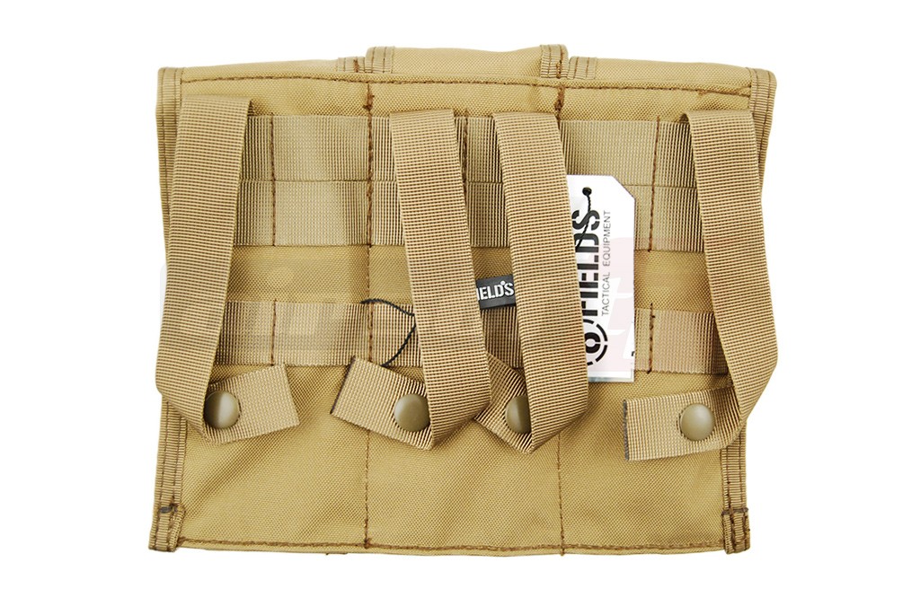 Acest buzunar este special creat pentru a putea fi atasat platformelor cu prindere de tip Molle. Acest sistem de prindere este special conceput pentru a asigura foarte bine legatura intre platforma si accesorii. Materialele folosite sunt de calitate iar cusaturile sunt rezistente. Fiecare buzunar poate gazdui 1 incarcator de tip M4/M16 sau cate 1 incarcator de AK. Pentru o fixare ferma buzunarele sunt acoperita cu cate un capac textil prevazut cu arici. Acest buzunar utilitar este ideal pentru accesorizarea vestelor sau a centurilor in ideea de a putea marii cantitatea de incarcatoare ce poate fi carata.