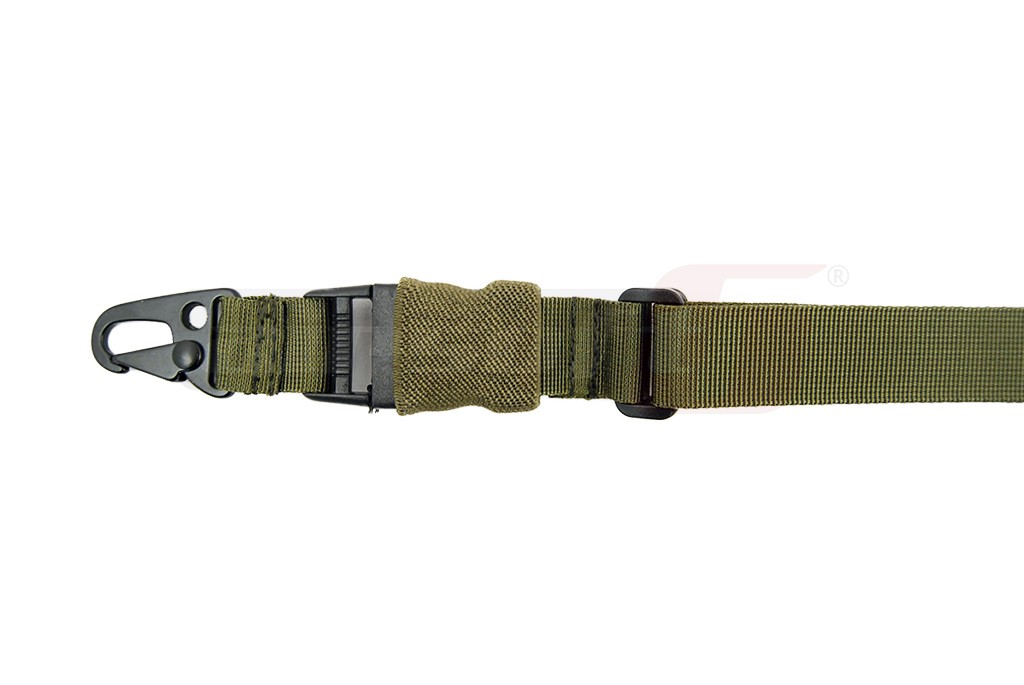 Aceasta este o curea fabricata de 8Fields, reglabila, cu prindere intr-un singur punct. Este fabricata din nylon si este prevazuta cu o carabina. Aceasta curea este prevazuta cu o sectiune elastica pentru imbunatatirea confortului. Sistemul de prindere este din metal si este sub forma de cioc de papagal.