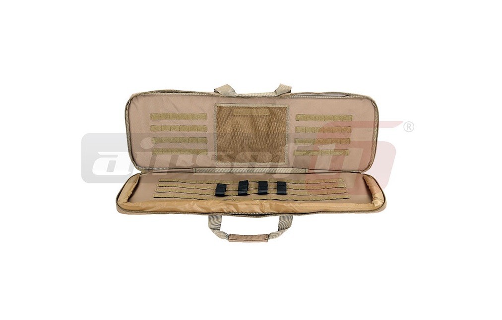 Geanta destinata transportului replicilor de airsoft, fabricata de 8Fields. Este realizata din nylon gros si este captusita pentru protejarea replicilor impotriva socurilor. Sistemul principal de inchidere este un fermoar dublu. Geanta ofera un buzunar mare central si mai multe buzunare inguste pe toata suprafata gentii. In partea exterioara exista un buzunar asigurat cu fermoar, un locas pentru legitimatie acoperit cu plastic transparent si un maner asigurat cu arici pentru sustinerea gentii. In caz de necesitate, geanta este prevazuta cu inele de prindere pentru curea de sustinere pe umar. In interior exista loc suficient pentru doua replici cu lungimea maxima de 1050 mm. Sistemele de asigurare a replicilor sunt alcatuite din gaici mobile asigurate cu arici. Aceste gaici pot fi pozitionate diferit pentru a gazdui o gama larga de replici si accesorii. In interior, pe fiecare parte a gentii exista un compartiment ce se intinde pe toata suprafata gentii.