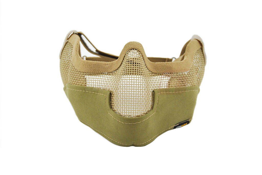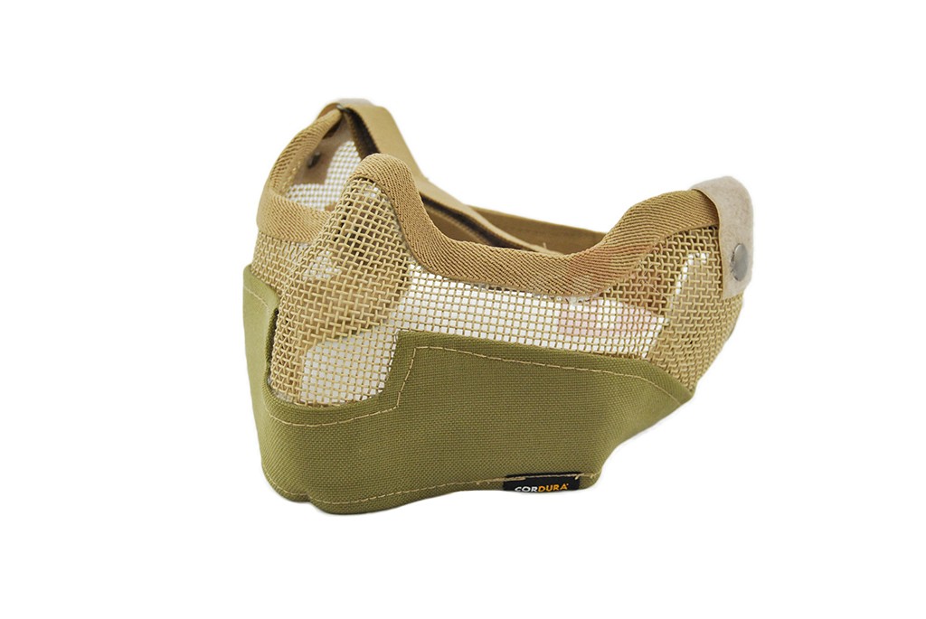 Masca pentru protectia gurii si a urechilor fabricata din sarma otelita impletita foarte rezistenta. Sistemul de prindere si conturul sunt fabricate din nylon rezistent iar pentru confort este adaugat material moale cu o textura de favorizeaza disiparea transpiratiei. Curelele de prindere sunt reglabile permitand montarea cat mai comoda a mastii.