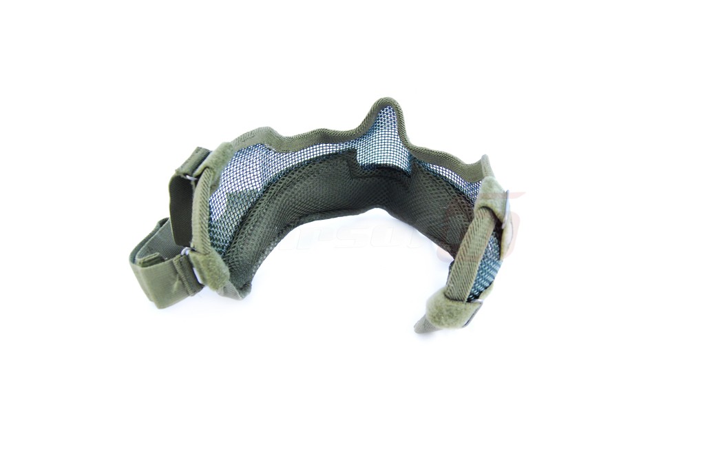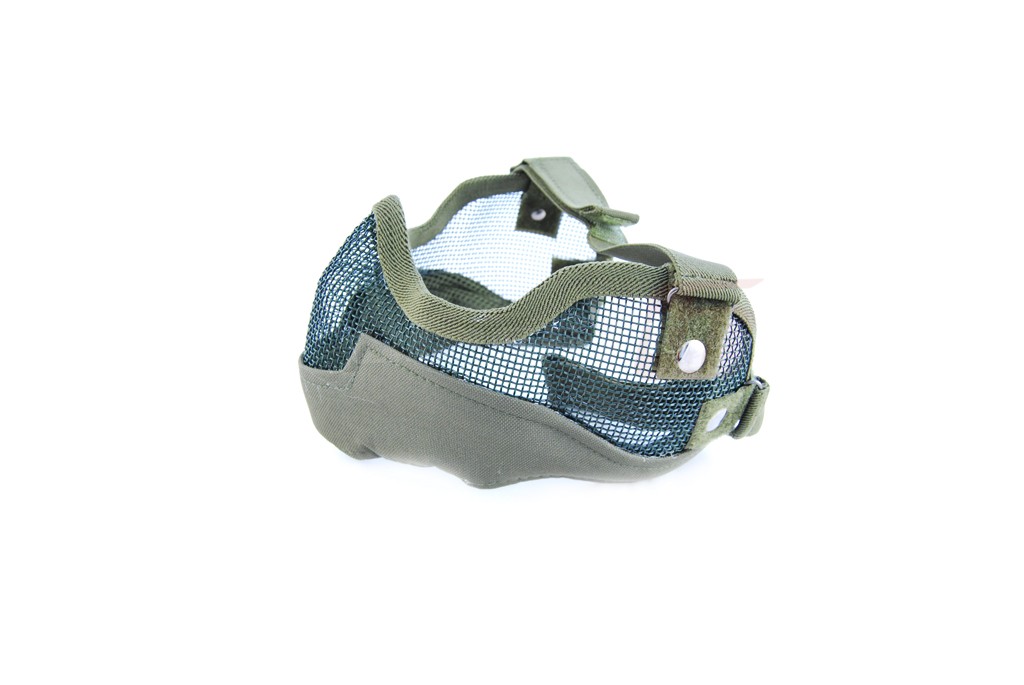 Masca pentru protectia gurii si a urechilor fabricata din sarma otelita impletita foarte rezistenta. Sistemul de prindere si conturul sunt fabricate din nylon 600D rezistent. Aceasta masca se prinde cu ajutorul a doua chingi elastice asigurate cu arici.