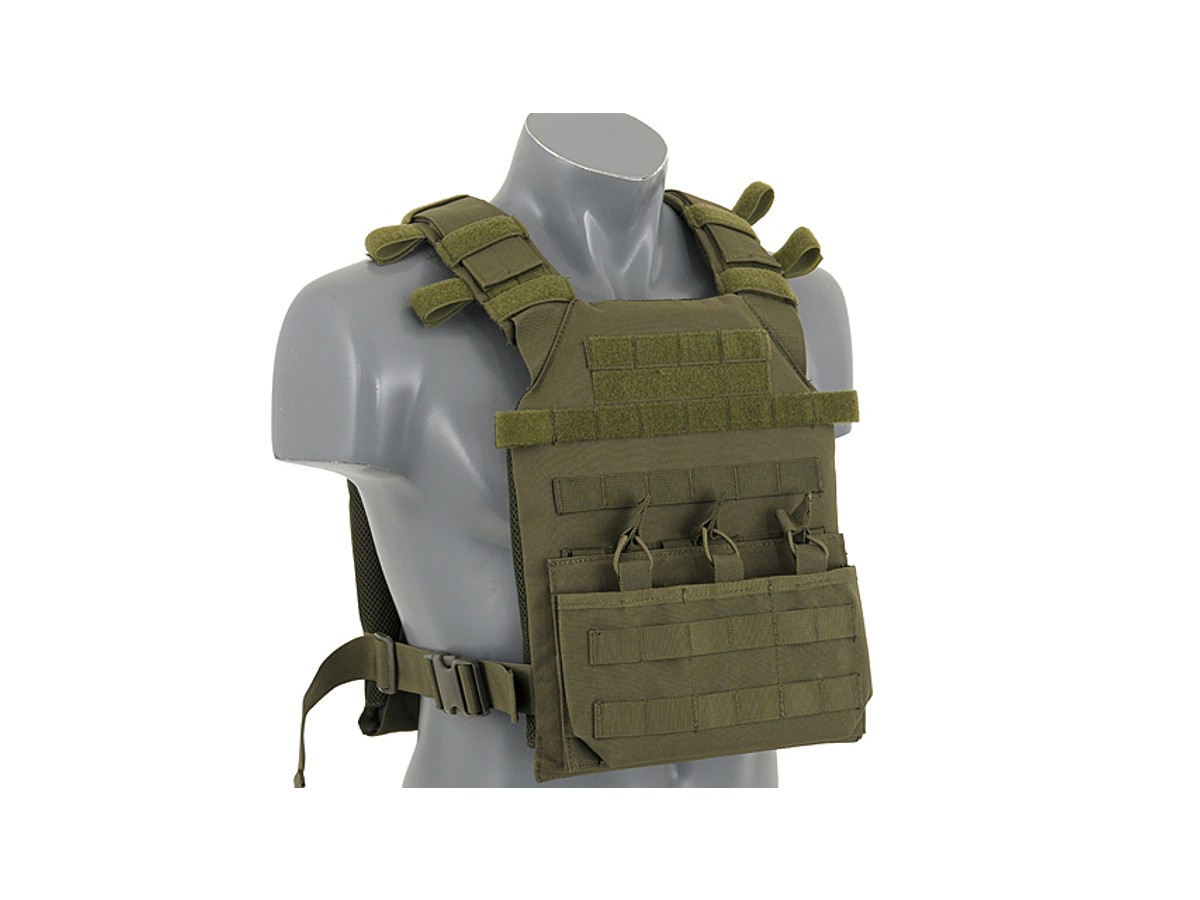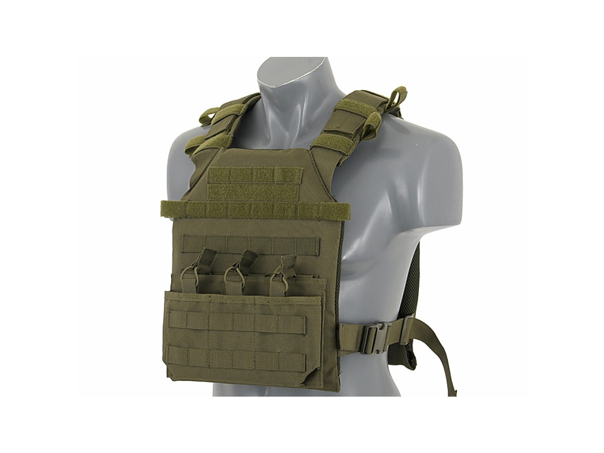 Acest plate carrier model Assault oferit de 8Fields reprezinta o platforma molle mica si versatila. In afara de capabilitatile unei veste tactice prevazute cu sistem de prindere al accesoriilor molle, ea este prevazuta cu 2 placi dure. Vesta este fabricata din nylon 600D de calitate, foarte rezistent la uzura si umezeala.