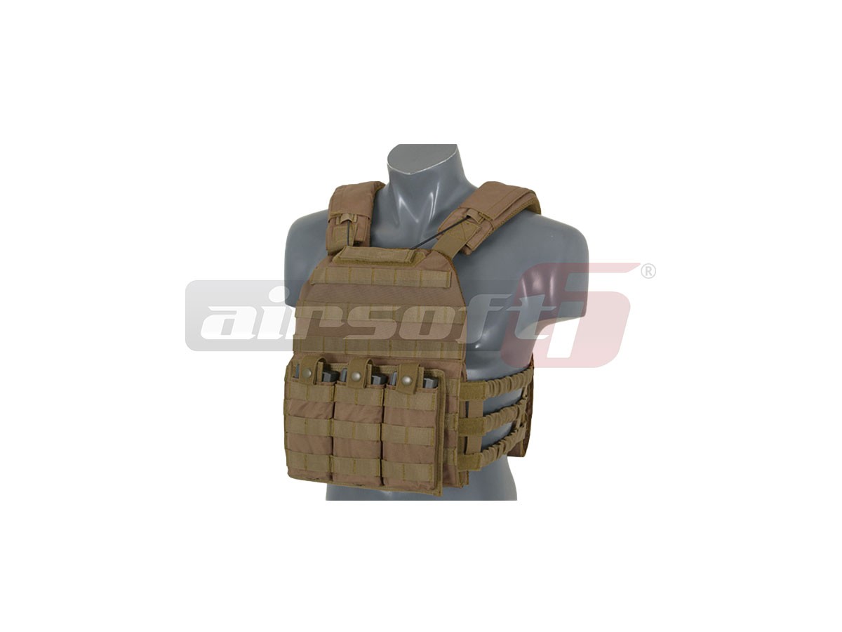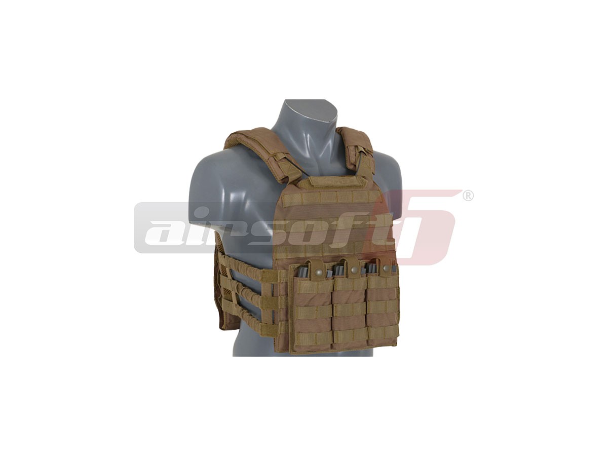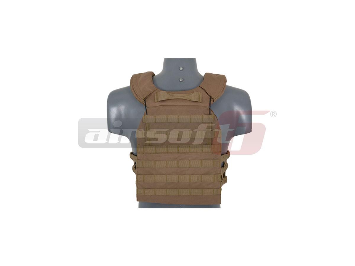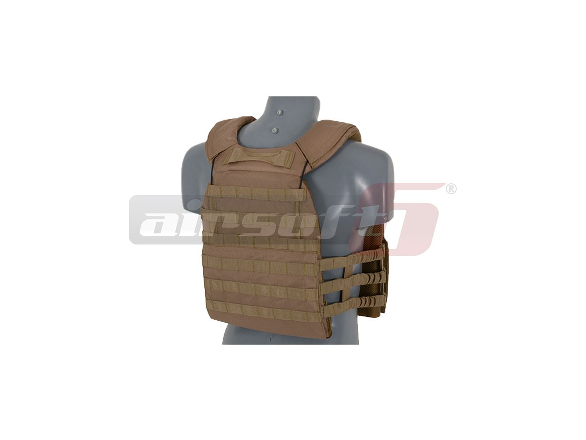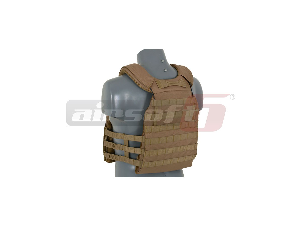 Acest plate carrier oferit de 8Fields model First Defense este destinata pentru cei slabi de inger care cred cu desavarsire sa o bila de airsoft poate sa lezeez vre-un plaman sau splina. In afara de capabilitatile unei veste tactice prevazute cu sistem de prindere al accesoriilor molle, ea este prevazuta cu 2 placi din plastic SAPI. Vesta este fabricata din nylon 600D de calitate, foarte rezistent la uzura si umezeala.