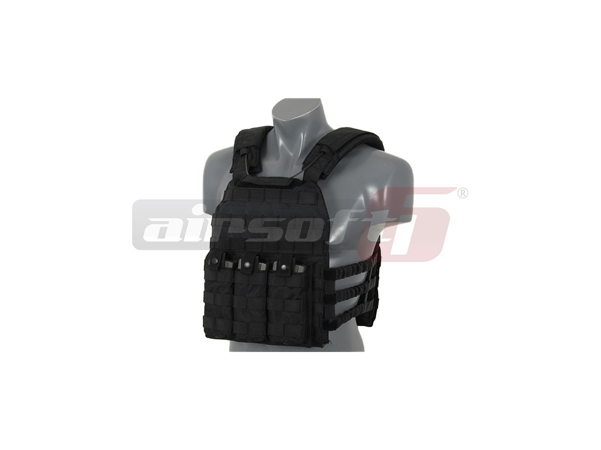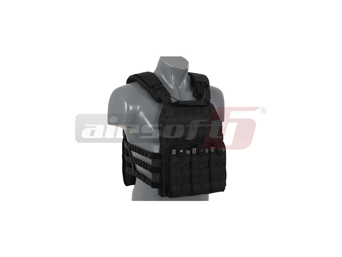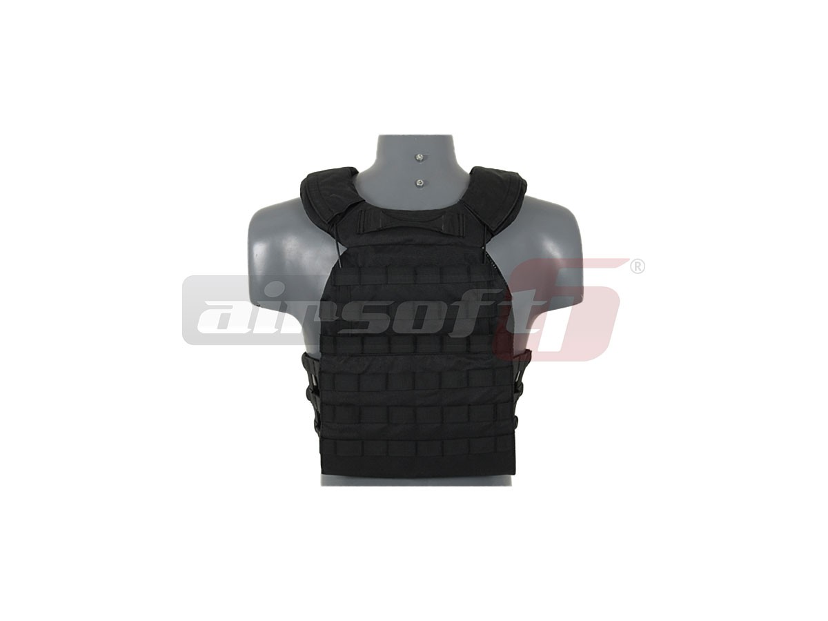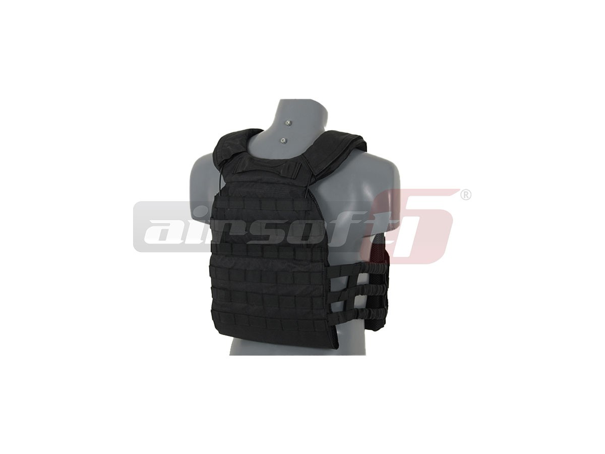 Acest plate carrier oferit de 8Fields model First Defense este destinata pentru cei slabi de inger care cred cu desavarsire sa o bila de airsoft poate sa lezeez vre-un plaman sau splina. In afara de capabilitatile unei veste tactice prevazute cu sistem de prindere al accesoriilor molle, ea este prevazuta cu 2 placi din plastic SAPI. Vesta este fabricata din nylon 600D de calitate, foarte rezistent la uzura si umezeala.