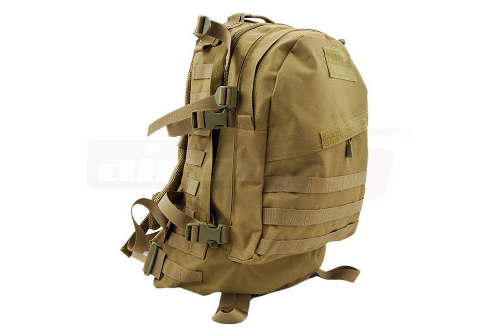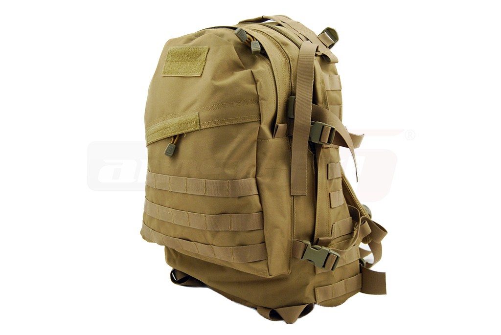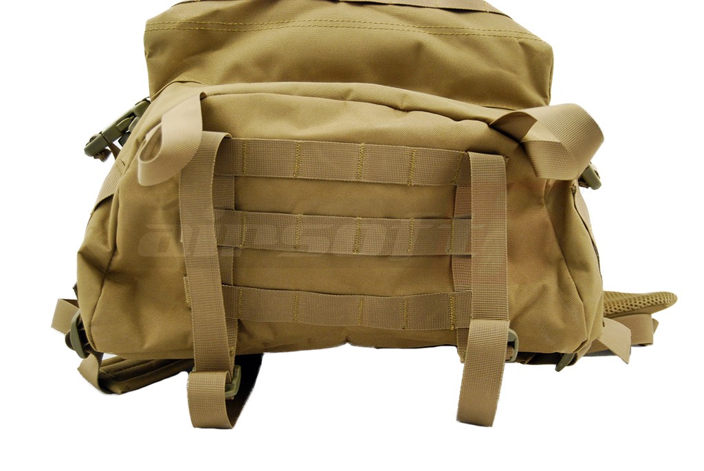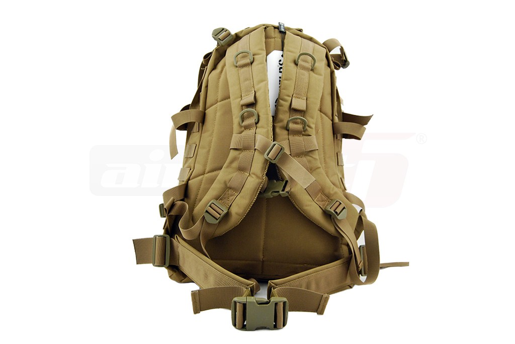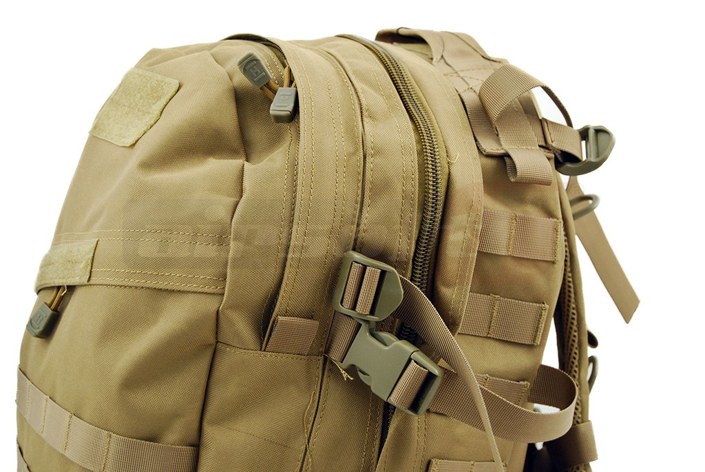 Rucsac tactic marca 8Fields destinat actiunilor militare. Acest rucsac este fabricat din Nylon 600D rezistent, captusit cu material plastic impermeabil. Are o capacitate de 30L iar compartimentarea este bine distribuita. Bretelele sunt reglabile iar in partea centrala exista un sistem de prindere intre ele pentru o mai buna asigurare a rucsacului in caz de actiuni fizice intense. Tot pentru asigurare exista o curea in jurul taliei, reglabila prevazuta cu carabina rapida.