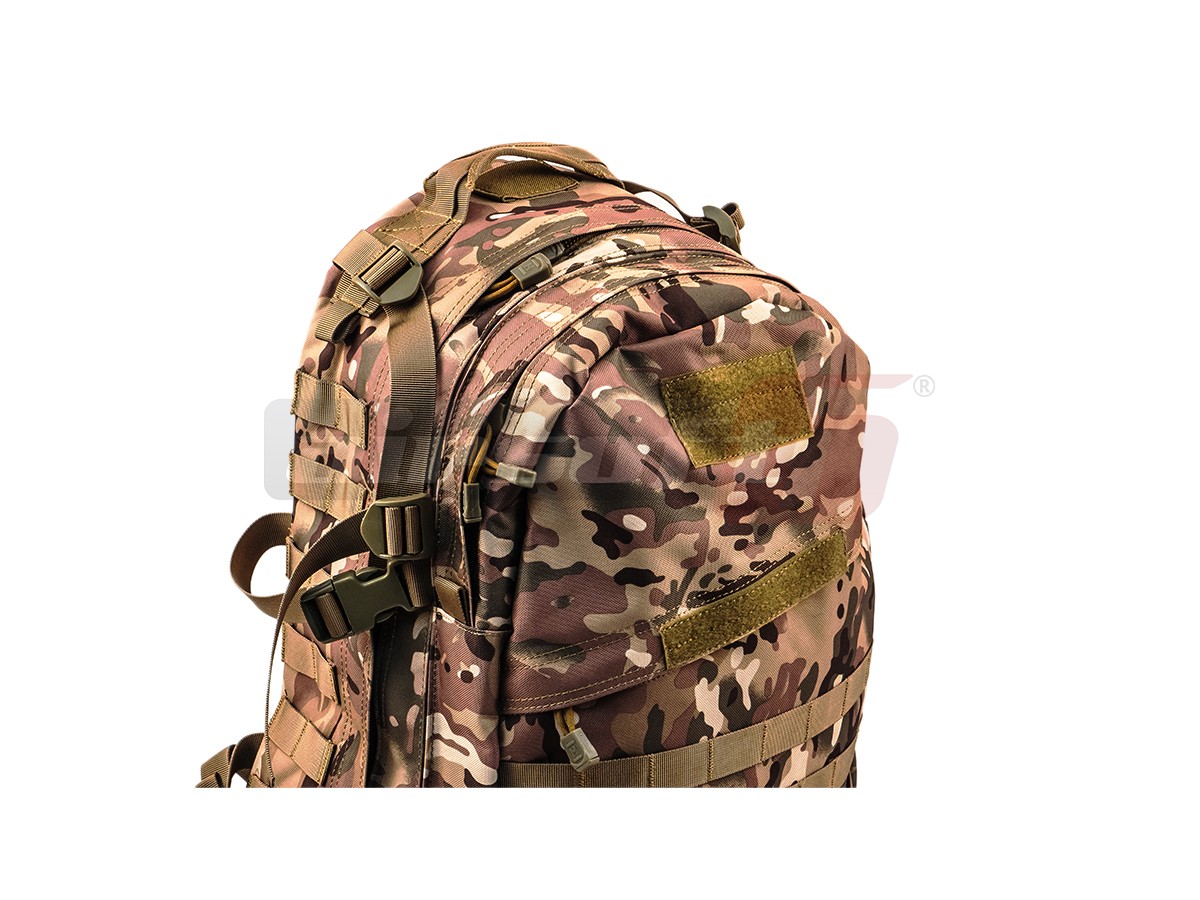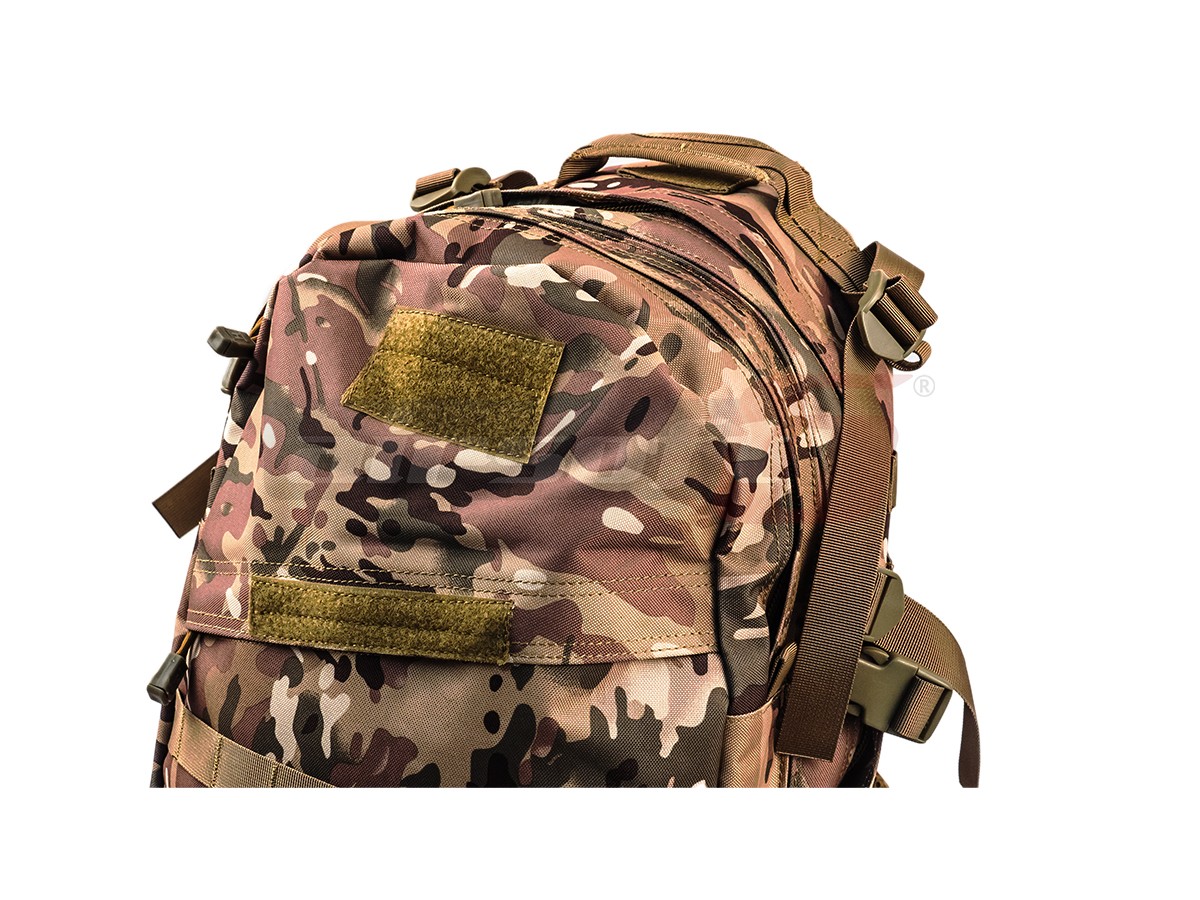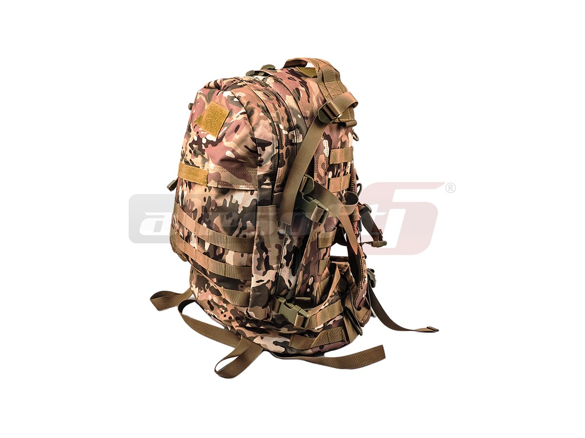 Rucsac tactic marca 8Fields destinat actiunilor militare. Acest rucsac este fabricat din Nylon 600D rezistent, captusit cu material plastic impermeabil. Are o capacitate de 30L iar compartimentarea este bine distribuita. Bretelele sunt reglabile iar in partea centrala exista un sistem de prindere intre ele pentru o mai buna asigurare a rucsacului in caz de actiuni fizice intense. Tot pentru asigurare exista o curea in jurul taliei, reglabila prevazuta cu carabina rapida.