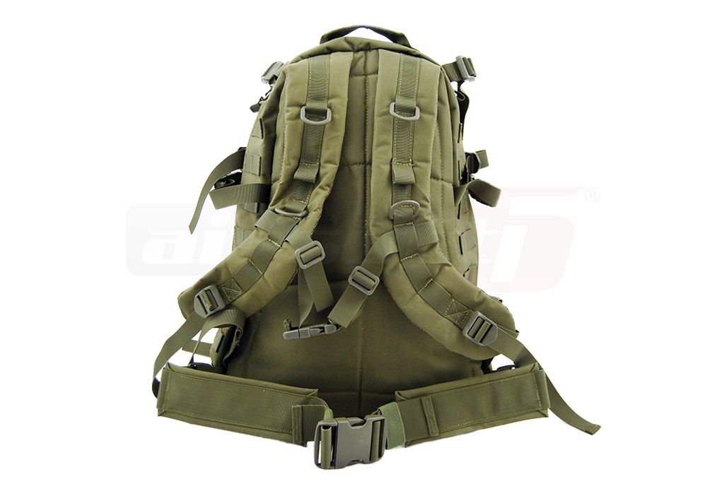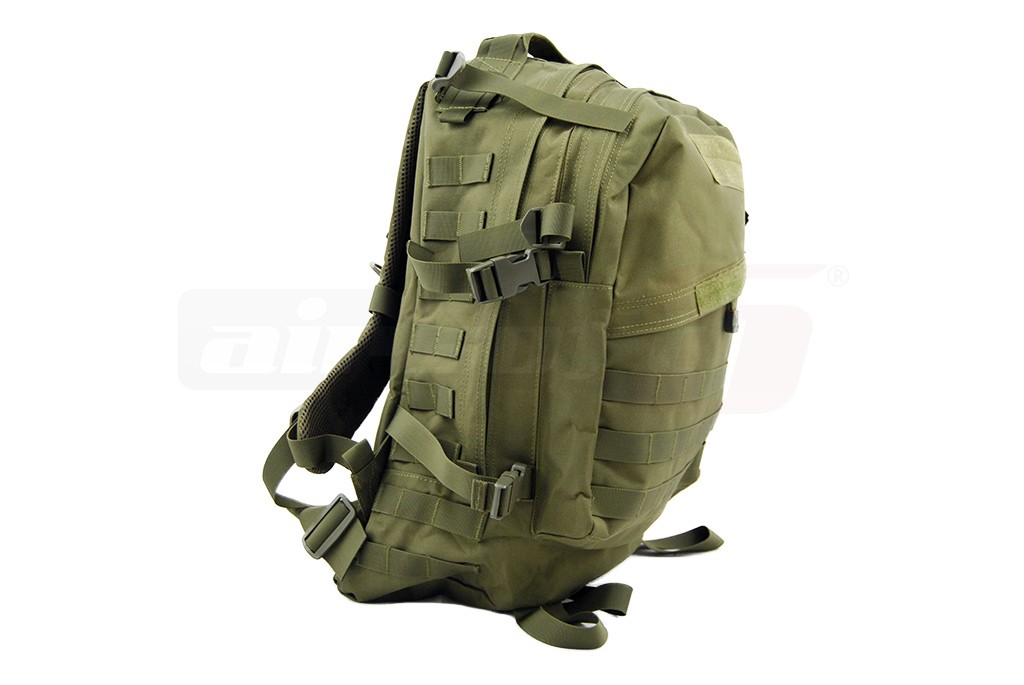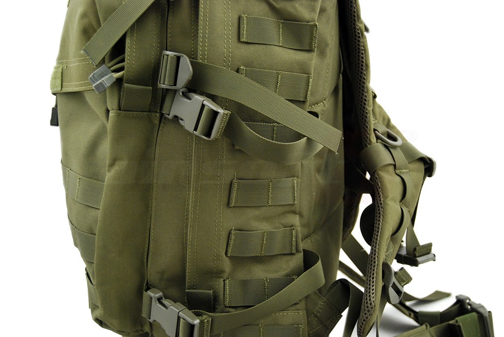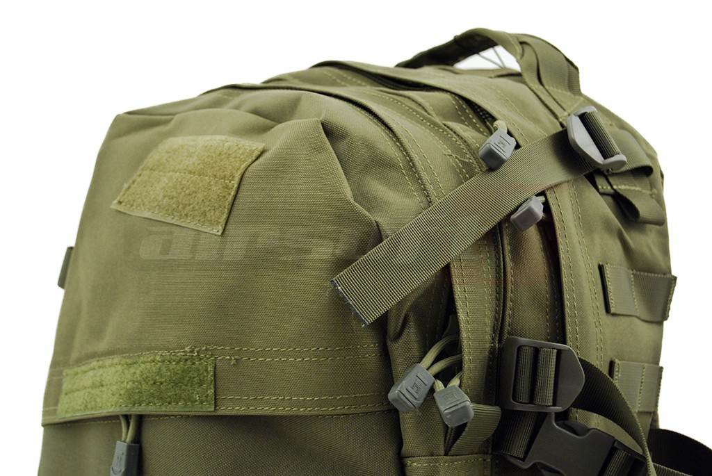 Rucsac tactic marca 8Fields destinat actiunilor militare. Acest rucsac este fabricat din Nylon 600D rezistent, captusit cu material plastic impermeabil. Are o capacitate de 30L iar compartimentarea este bine distribuita. Bretelele sunt reglabile iar in partea centrala exista un sistem de prindere intre ele pentru o mai buna asigurare a rucsacului in caz de actiuni fizice intense. Tot pentru asigurare exista o curea in jurul taliei, reglabila prevazuta cu carabina rapida.