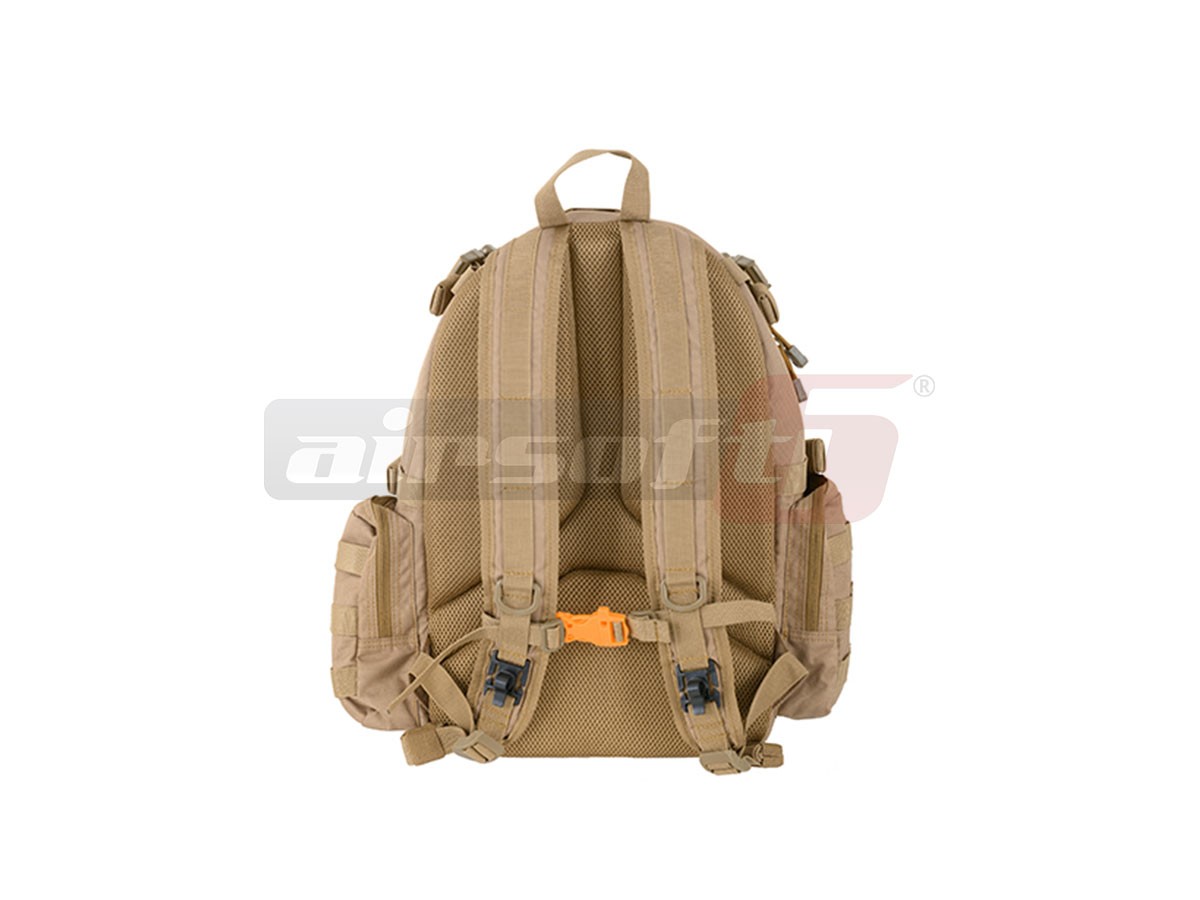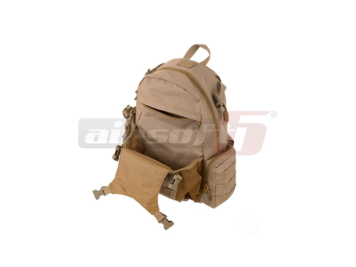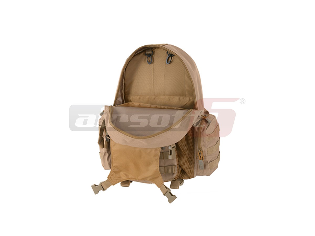 Rucsac tactic marca 8Fields destinat actiunilor militare. Acest rucsac este fabricat din Nylon 600D rezistent, captusit cu material plastic impermeabil. Are o capacitate de 20L iar compartimentarea este bine distribuita. Bretelele sunt reglabile iar in partea centrala exista un sistem de prindere intre ele pentru o mai buna asigurare a rucsacului in caz de actiuni fizice intense. Tot pentru asigurare exista o curea in jurul taliei, reglabila prevazuta cu carabina rapida.