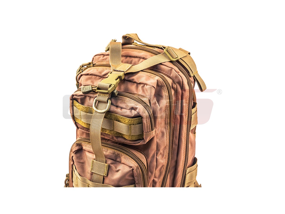 Rucsac tactic marca 8Fields destinat actiunilor militare. Acest rucsac este fabricat din Nylon 600D rezistent, captusit cu material plastic impermeabil. Are o capacitate de 15L iar compartimentarea este bine distribuita. Bretelele sunt reglabile iar in partea centrala exista un sistem de prindere cu carabina ce asigura toate compartimentele rucsacului in caz de actiuni fizice intense. Tot pentru asigurare exista bretele si in jurul rucsacului, deasemenea reglabile.