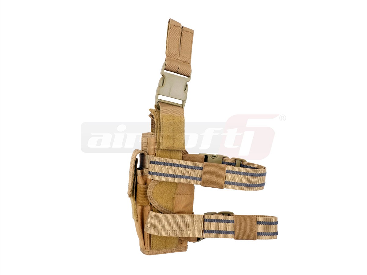 Toc pentru pistol cu prindere pe picior si centura. Acest toc este fabricat din nylon rezistent iar legaturile si cataramele sunt confectionate din plastic ABS de calitate. Printre avantajele acestui sistem de prindere se numara; posibilitatea de a regla marimea tocului in functie de pistolul utilizat pentru o mai buna fixare, un sistem elastic de asigurare a pistolului in toc, rapid si posibilitatea de a monta accesorii suplimentare utilizand sistemul molle extern, un exemplu bun de accesorii ar fi buzunare port incarcatoare pistol suplimentare. Tocul are incorporat un buzunar pentru un incarcator suplimentar.