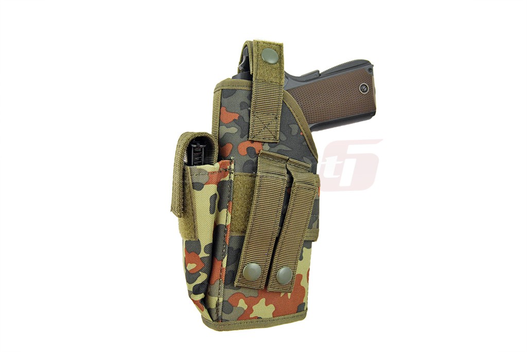 Toc reglabil cu prindere pe centura. Acest toc poate acomoda o mare verietate de pistoale de airsoft. Este fabricat din Nylon 600D oferindu-i astfel rezistenta la uzura. Acest toc poate fi montat pe cureaua de la pantaloni dar se recomanda montarea acestuia pe o centura tactica pentru confort si siguranta.