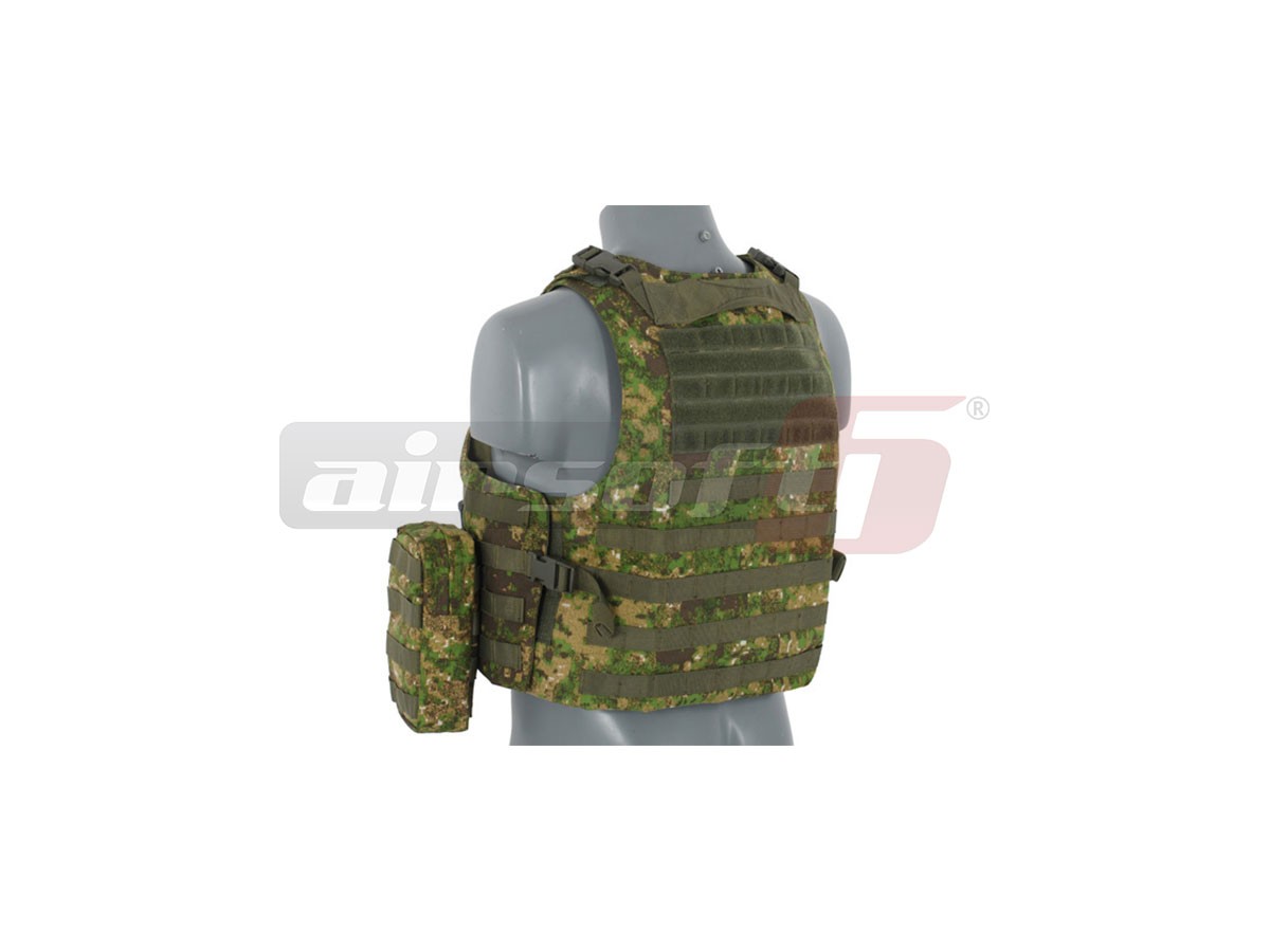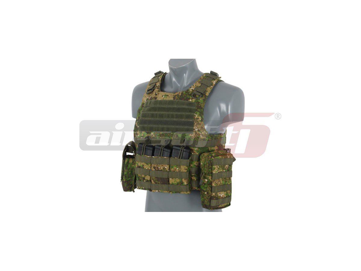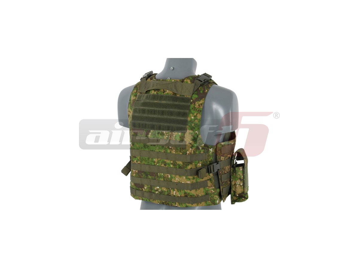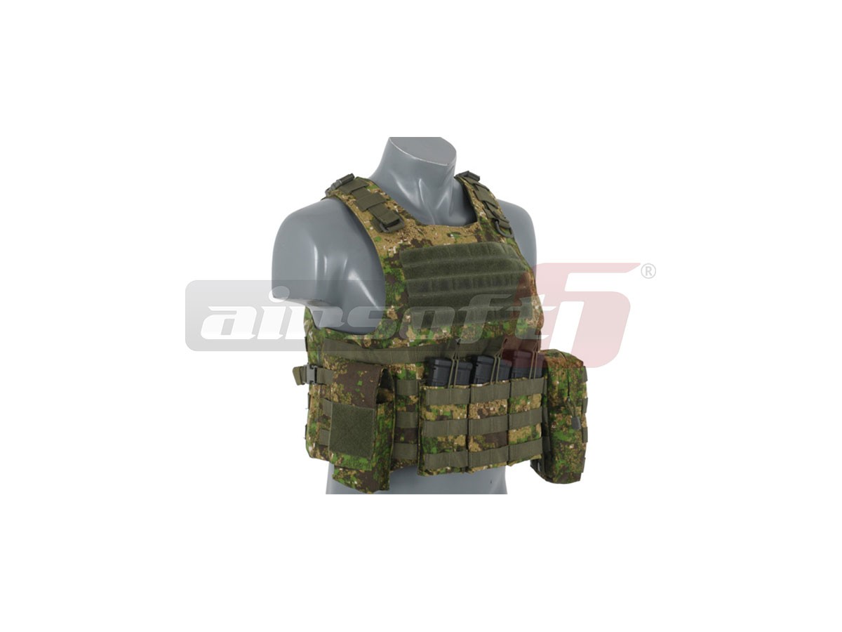 Replica dupa un model celebru AAV FSBE QR, aceasta vesta incorpozeaza toate elementele importante ale vestei adevarate. Materialele folosite si sistemele de prindere sunt foarte rezistente. Baza vestei constituie o platforma molle pe care pot fi atasate o multitudine de buzunare utilitare si accesorii. In pachet sunt incluse 2 port incarcatoare duble mari, un buzunar cu fermoar, un buzunar utilitar cu chinga si un port harta cu buzunar pentru incarcator. Marimea vestei este reglabila.
