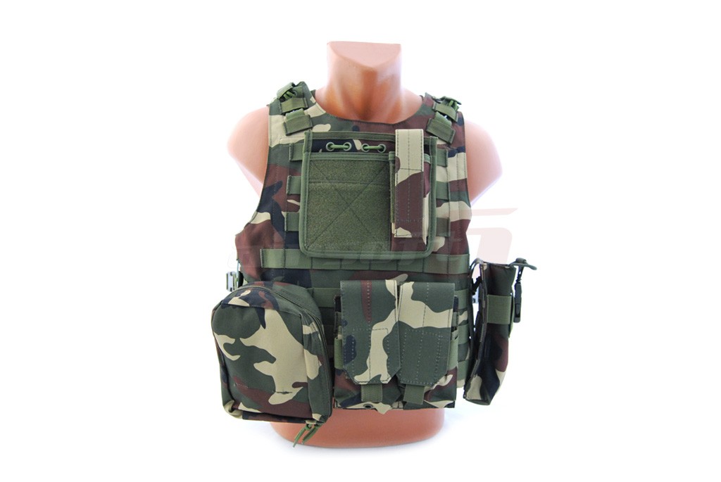 Replica dupa un model celebru AAV FSBE QR, aceasta vesta incorpozeaza toate elementele importante ale vestei adevarate. Materialele folosite si sistemele de prindere sunt foarte rezistente. Baza vestei constituie o platforma molle pe care pot fi atasate o multitudine de buzunare utilitare si accesorii. In pachet sunt incluse 2 port incarcatoare duble mari, un buzunar cu fermoar, un buzunar utilitar cu chinga si un port harta cu buzunar pentru incarcator. Marimea vestei este reglabila.