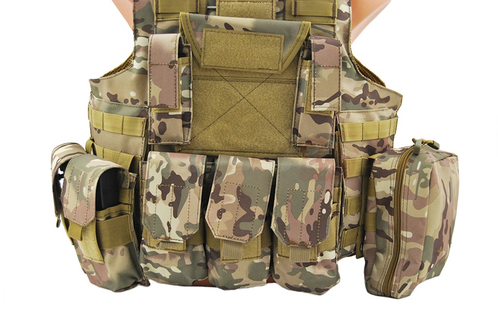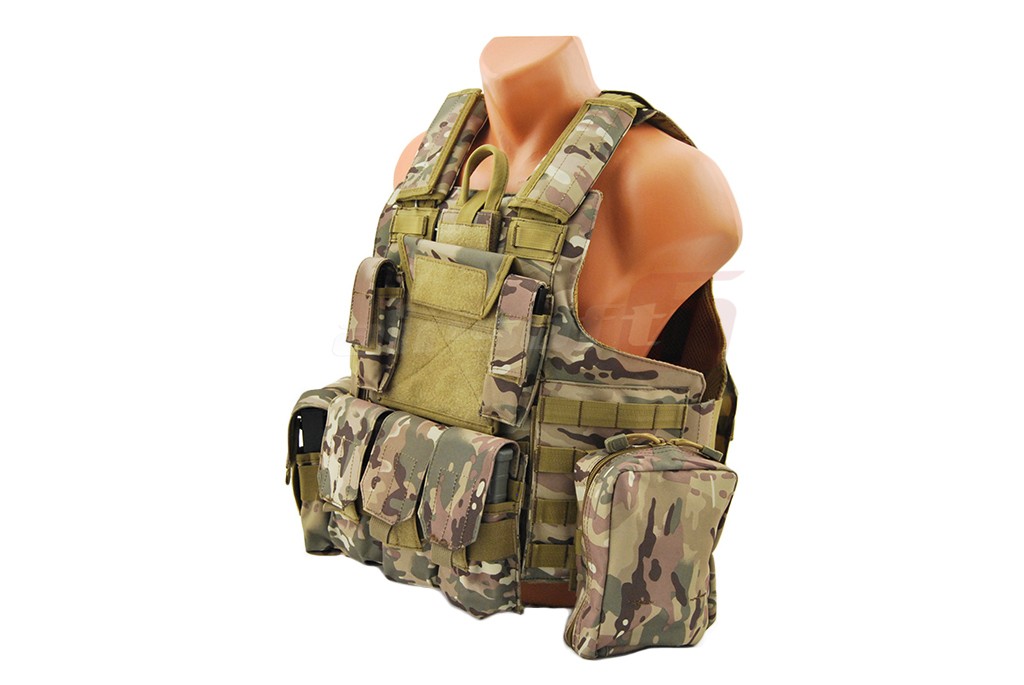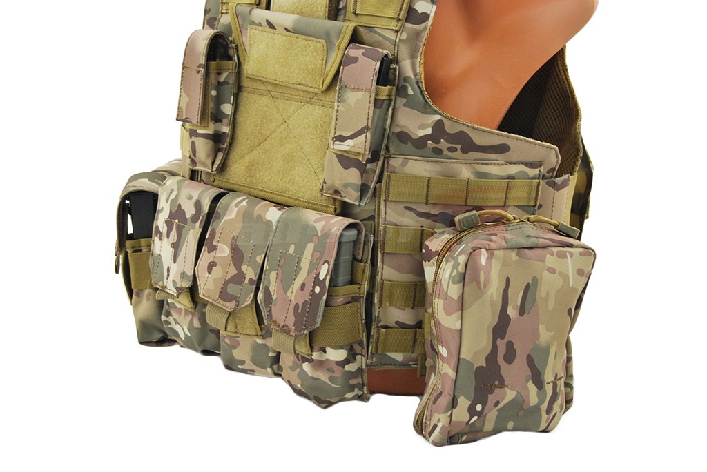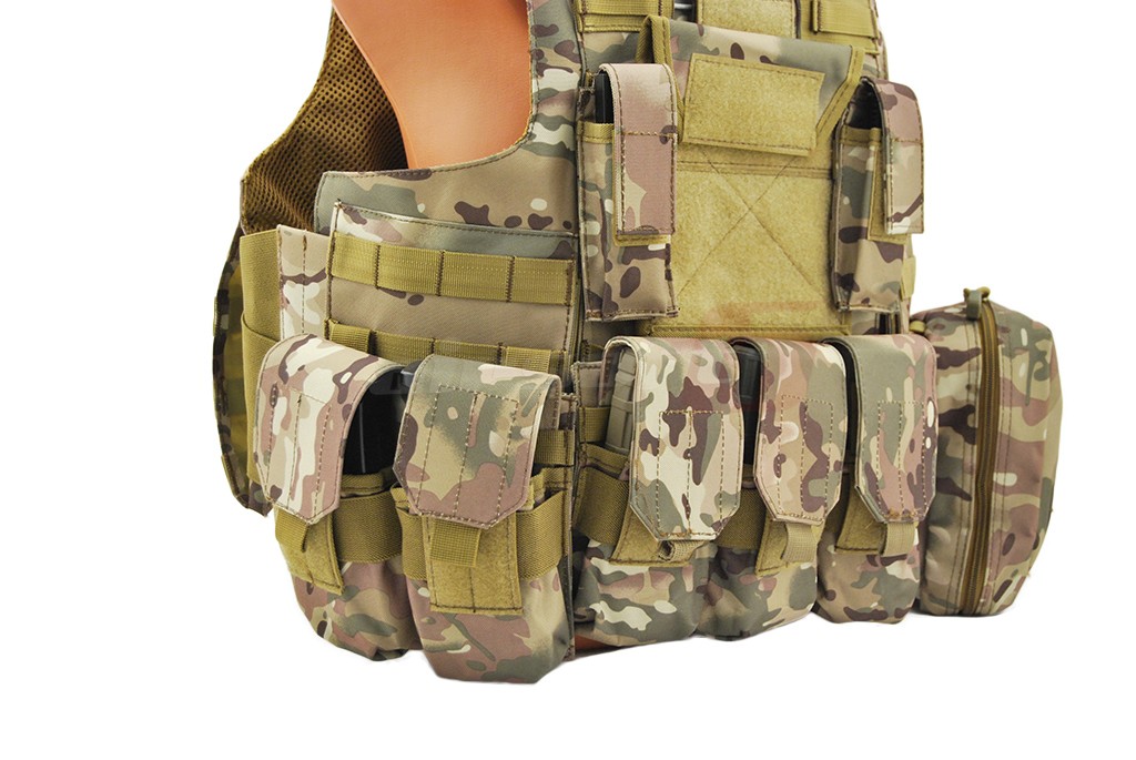 In pachet sunt incluse: 5 buzunare port incarcatoare replica principala, un admin pouch, pouch pentru lanterna, pouch pentru statie, un buzunar cu fermoar utilitar. Aceasta vesta este dotata cu sistem de detasare rapida, iar actionarea este precum cea a vestei originale, in partea frontal superioara a vestei.