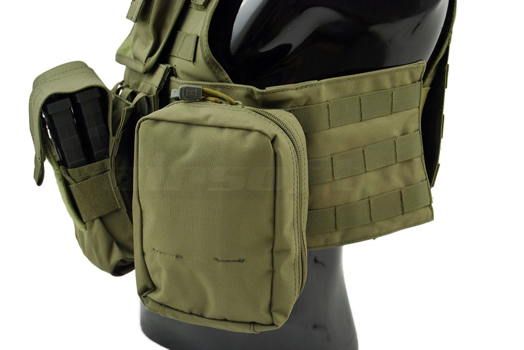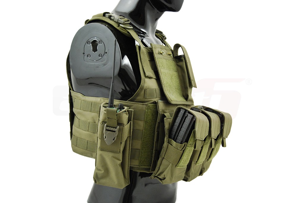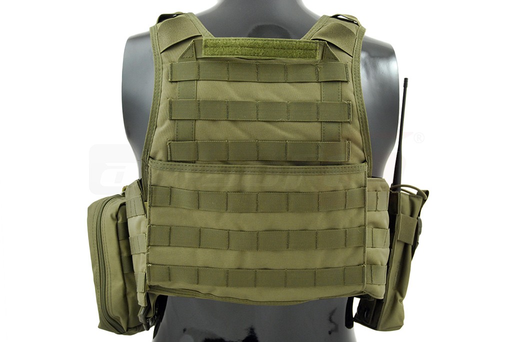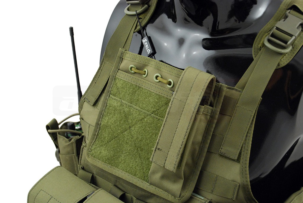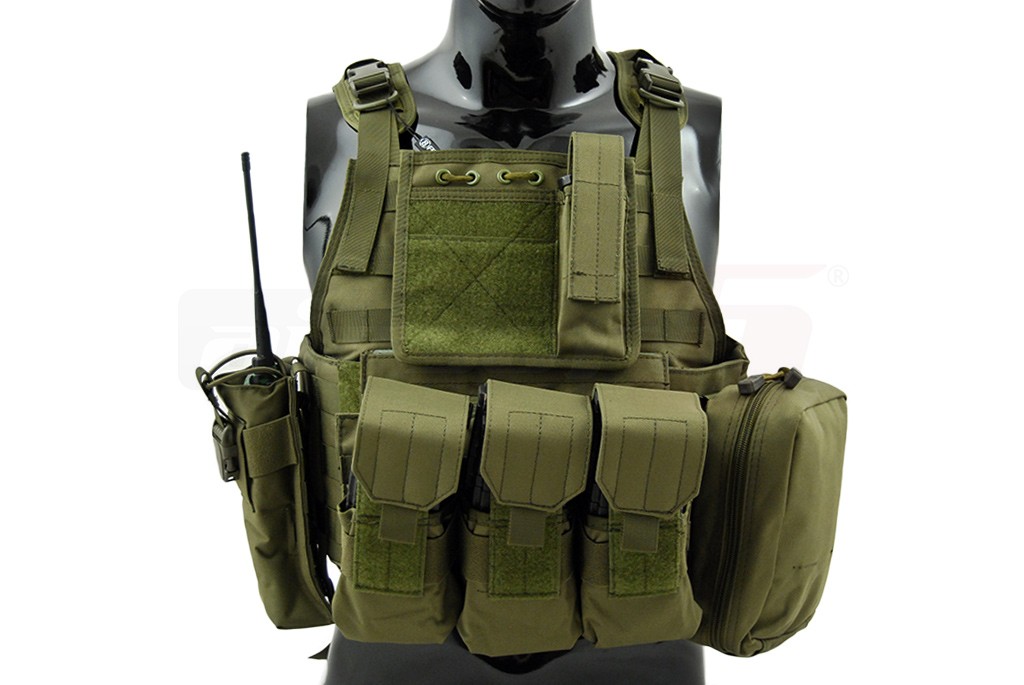 Aceasta vesta tactica este fabricata de 8Fields si este destinata airsoft-ului. Modelul reprodus este Cummerbund si la baza este un plate carrier prevazut cu sisteme de prindere molle. Aceste prinderi sunt amplasate pe o mare parte a suprafetei exterioare a vestei, permitand o buna accesorizare. Vesta este fabricata din nylon, si are grosimea de 600D. Prinderea vestei se realizeaza cu ajutorul unor sectiuni cu arici amplasate in partea frontala. In partea din spate exista un sistem de reglaj pentru o fixare cat mai buna. Veste este livrata impreuna cu un buzunar triplu, un buzunar utilitar, un buzunar admin si un buzunar pentru statie.
