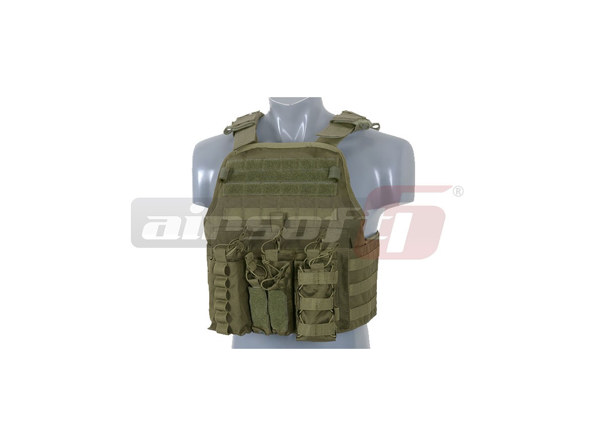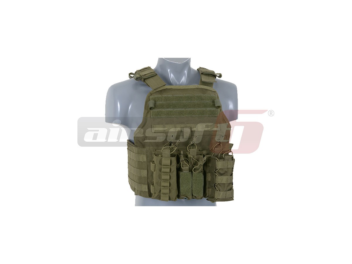 Sistemele de prindere si asigurare sunt fabricate din nylon rezistent. Buzunarele permit transportul a 4 incarcatoare mari pentru replici de asalt, 2 incarcatoare mici de pistol, o statie si mai multe cartuse de shootgun. Marimea vestei este reglabila atat la umeri cat si in jurul taliei. Atat in partea frontala cat si dorsala exista sectiuni din velcro pe care vor putea fi montate patch-uri sau accesorii.