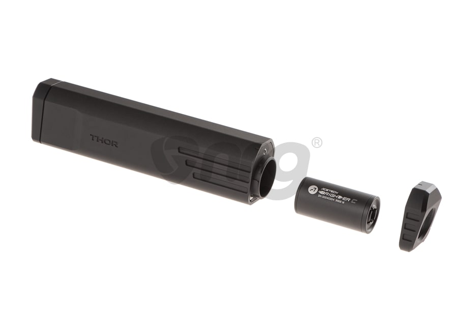 Fabricat cu materiale și componente de înaltă calitate, THOR este un amortizor de tip tracer QD , echipat cu modulul Brighter C ca si unitate de iluminare a bilei. Este un dispozitiv cu dimensiuni reduse și aspect agresiv. Supresorul este echipat cu un sistem QD compatibil cu un dispozitiv de ascundere a blitz-ului cu trei dinti inclus cu filet special Kriss Vector. Amortizorul are un diametru de 39x46.5 mm, o lungime de 202 mm și o greutate de 330 g. Carcasa exterioară este prelucrată cu precizie CNC din aluminiu anodizat negru, cu un capac perforat simulat care disipează căldura. Unitatea de iluminare iradiază atât BB-uri verzi, cât și cele cu gel și ilumineaza până la 35 de bile pe secundă. Bateria Li-Po integrată este încărcată printr-un port micro-USB și nu poate fi înlocuită. Controlul inteligent al puterii și sistemul Shake and On reduce consumul de energie și prelungește durata de viață a bateriei.