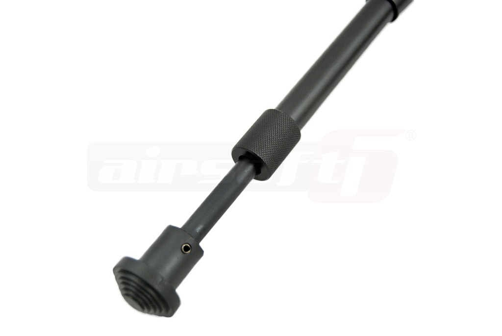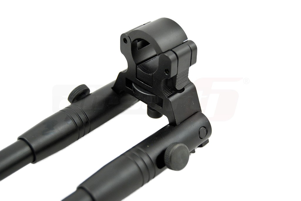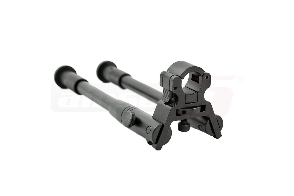 Acesta este un sistem de fixare a replicii de airsoft pe pozitia de panda, pentru a usura efortul utilizatorului. Este fabricat din metal si este prevazut cu cauciuc antialunecare. Este pliabil in ambele directii si extensibil. Acest bipod se poate monta direct pe teava externa sau alta teava rotunda. Suportul este usor de montat si odata inchis inelul, acesta poate fi strans cu ajutorul rotii de reglaj in partea inferioara.