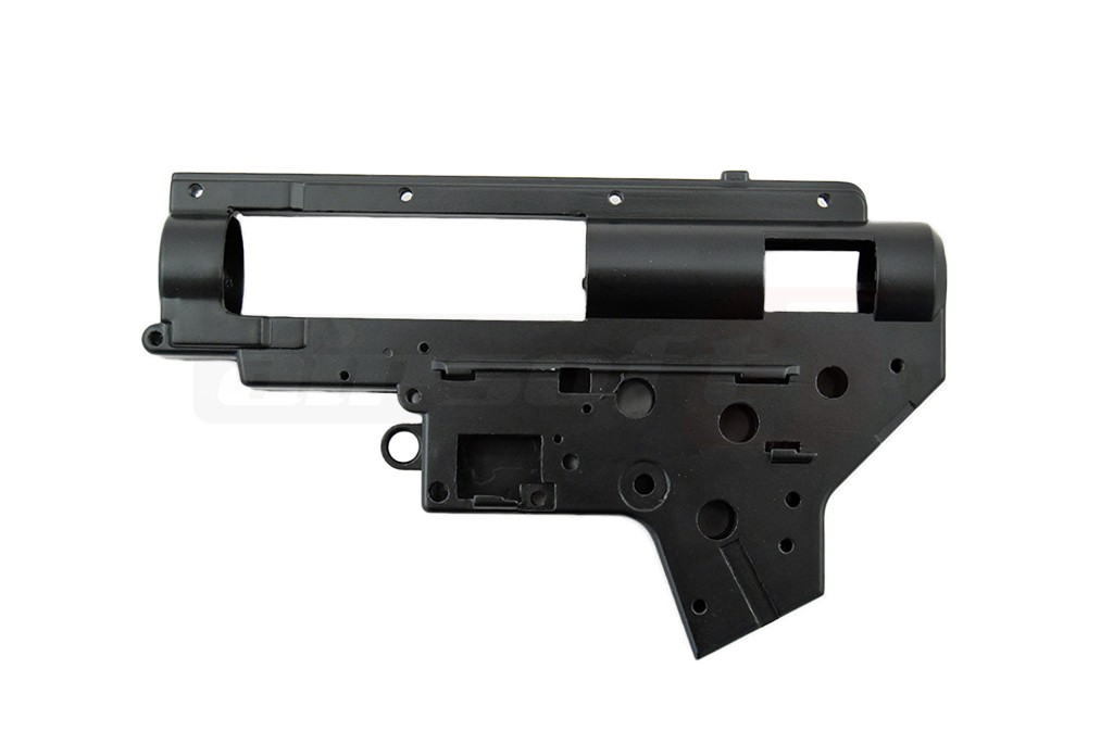 Carcasa destinata replicilor cu functionare electrica prevazute cu gearbox versiune 2. Aceasta carcasa fabricatie ACM este fabricata din antimoniu. Peretii carcasei sunt mai grosi decat a majoritatii carcaselor cu care sunt prevazute replicile AEG atunci cand vin de la producator. Aceasta carcasa este ramforsata in locuri cheie pentru a oferi un plus de rezistenta in timpul exploatarii. Aceasta carcasa se recomanda pentru inlocuirea carcase existente in urma unei avarii. Orificiile pentru bucse au un diametru de 8mm, permitand montarea unor rulmenti pentru a usura sarcina motorului.