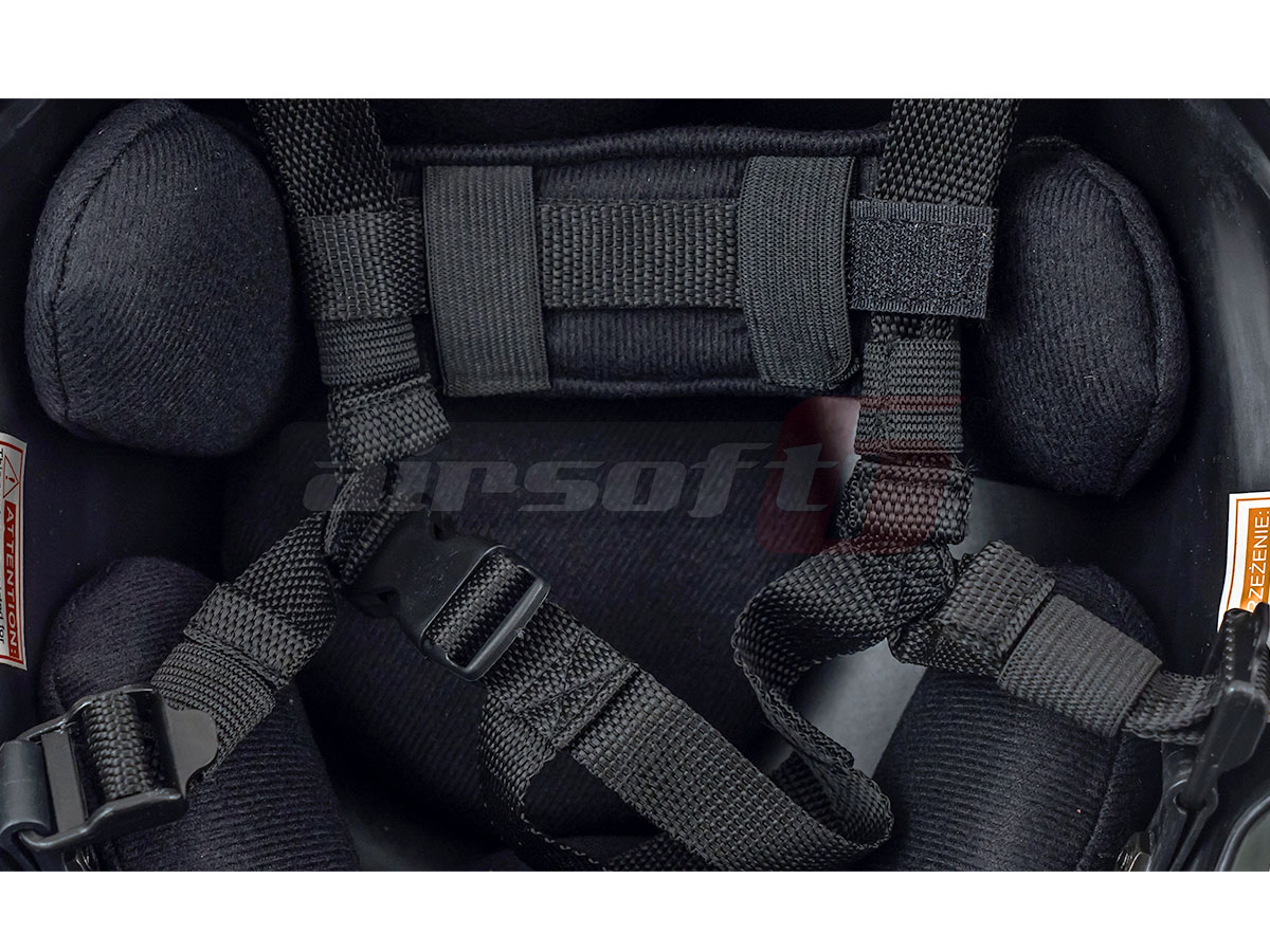 Pe lateralele castii exista sine tactice pe care vor putea fi montate accesorii iar in partea frontala deasemenea exista un sistem special de prindere a accesoriilor. Pe suprafata castii exista sectiuni de velcro pentru atasarea ecusoanelor sau patch-urilor.