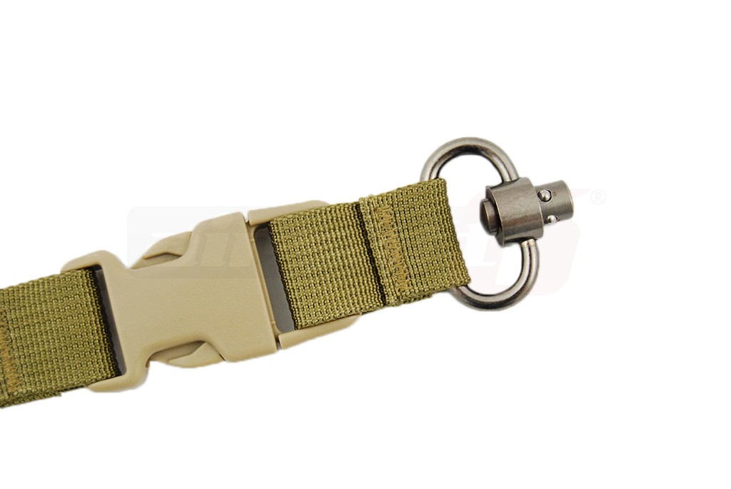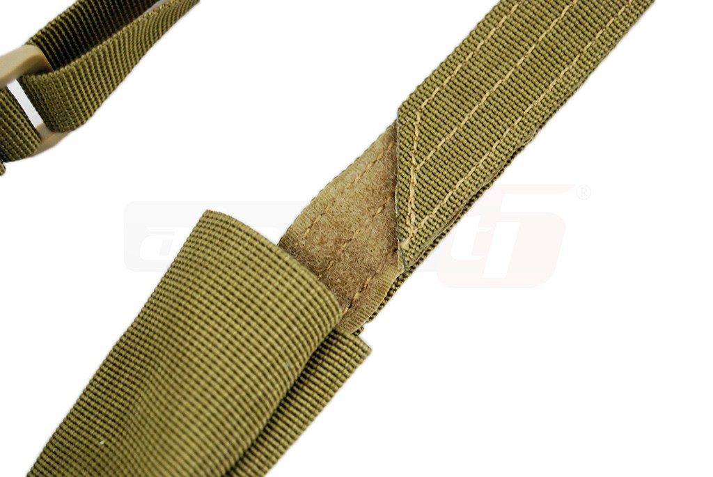Curea pentru sustinerea replicii de airsoft, fabricatie ACM. Aceasta curea este prevazuta cu un singur punct de sustinere iar sistemul de prindere este cu detasare rapida, permitand astfel o mai buna manevrare in caz de necesitate. In afara de sistemul principal de prindere prevazut cu detasare rapida mai exista si doua carabine din plastic pentru a putea manevra si mai usor cureaua. Dimensiunea curelei este reglabila iar pe toata suprafata curelei exista o protectie moale pentru a imbunatati confortul utilizatorului.