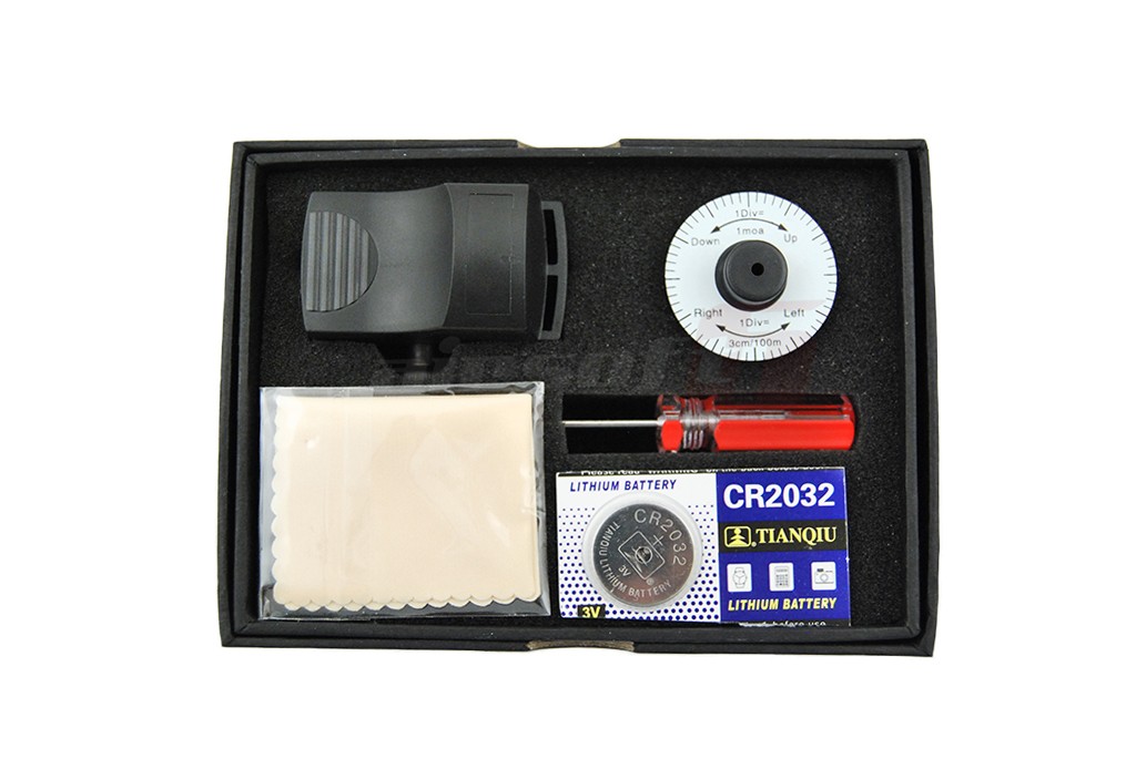 Acest dispozitiv electronic de mici dimensiuni este utilizat pentru a usura ochirea. Un punct rosu luminos este reflectat de catre geamul frontal iar acel punct se misca odata cu miscarea laterala naturala a utilizatorului proiectand destul de exact fix punctul de tintire a replicii. Este fabricat din aluminiu de calitate fiind usor si rezistent. Se poate monta pe sine standard de tip picatinny si se asigura cu ajutorul unui surub mare usor accesibil. Punctul se poate regla atat pe inaltime cat si lateral. Functioneaza cu o baterie de tip CR2032 care este montata intre partea inferioara si partea superioara. Pentru accesarea bateriei trebuiesc indepartate cele doua suruburi din partea superioara. Dispozitivul porneste automat atunci cand este indepartat capacul superior, este prevazut cu senzor de lumina pentru a stabili exact intensitatea punctului. In pachet este inclus un capac din plastic pentru protectie in momentul transportului dar si o surubelnita pentru reglaj ce se va utiliza impreuna cu discul de reglaj din plastic deasemenea inclus in pachet.