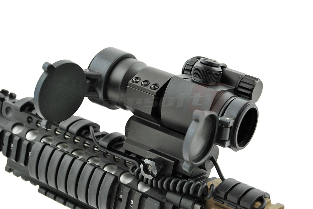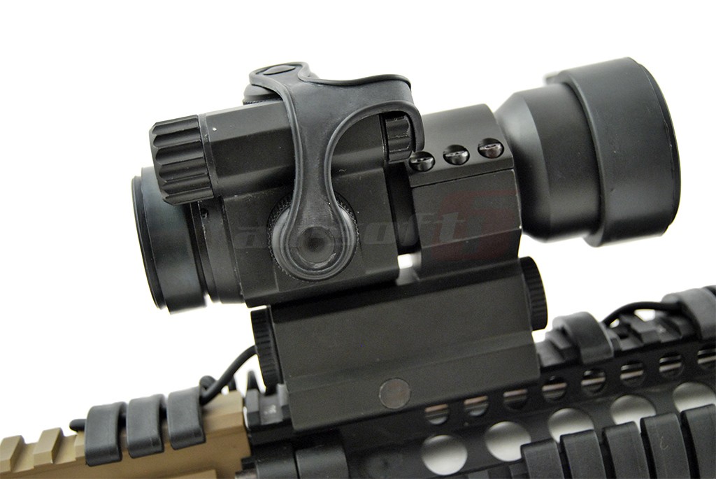 Sistem de ochire electronic ce replica colimatorul Aimpoint model Comp M2. Aceasta replica este realizata din aluminiu fiind rezistent si totodata usor. In pachet sunt incluse capace pentru partea frontala si cea din spate, capacele sunt cu arc, astfel odata deschise ele raman in pozitie deschis si un sistem de montare ce permite atasarea sa pe sinele standard.