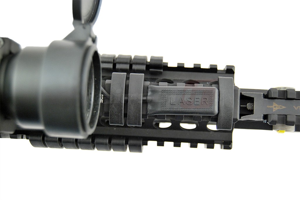 In interiorul sistemului de prindere este inclus un laser Rosu reglabil. Acest laser incorporat este util atunci cand se doreste economisirea spatiului pe suprafata de montare a replicii. Laserul este prevazut cu un pad cu fir extensibil pentru actionare de la distanta.