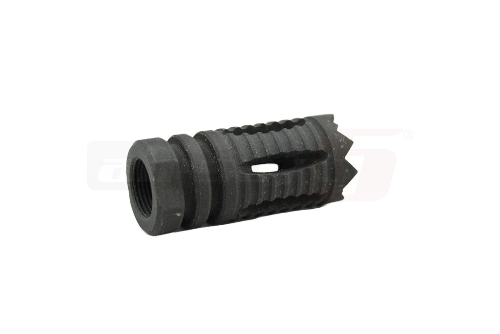 Supresor de flama pentru replici de airsoft prevazut cu filet cu sens invers. Este fabricat din otel si imita modelul Medieval. Recomandam sa nu utilizati lipici pentru filet ci doar sistemul oiriginal de reglaj al replicii atunci cand este cazul sau o garnitura de cauciuc.
