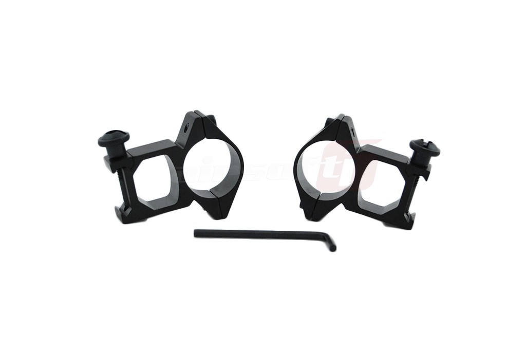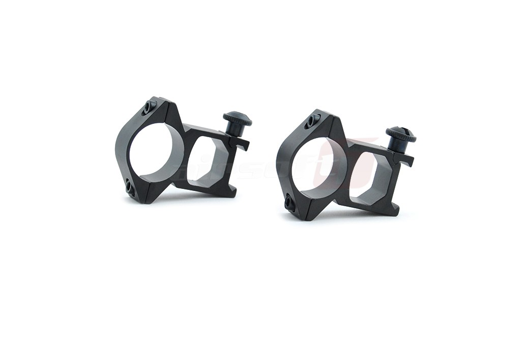 Inele inalte pentru prinderea lunetei cu diametrul tubului de 25mm pe sine de 22mm. Aceste inele sunt fabricate din aluminiu iar suruburile sunt din otel si permit strangerea cu mana libera. Permitand astfel o montare/demontare mult mai usoara. In intrior exista sectiuni din material pentru protectia tubului lunetei.