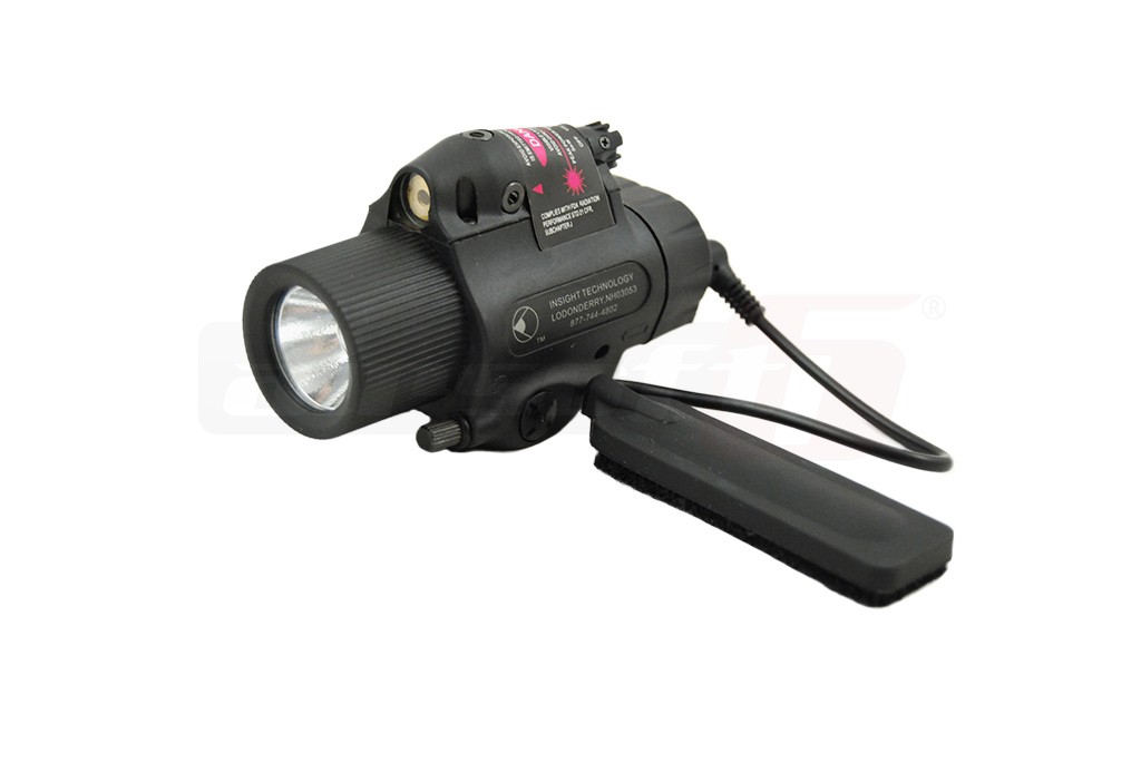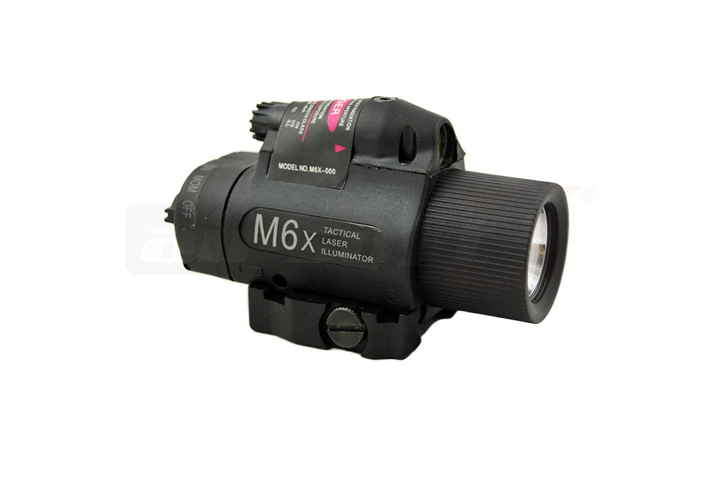 Lanterna tactica prevazuta cu laser. Aceasta lanterna este utila deoarece in afara luminii ce o genereaza, raza laser permite o ochire mai usoara atunci cand este cazul. Este fabricata din plastic ABS si poate fi montata pe sine standard picatinny. Functioneaza cu 2 baterii CR123A ce au loc in interiorul dispozitivului, spatiu accesibil prin indepartarea capacului din spate. Dispozitivul este prevazut cu 2 comutatoare si un buton ON/OFF ce vor permite mai multe combinatii de moduri de functionare intre laser si lanterna. In pachet exista si o comanda auxiliara pentru a o putea monta in alta locatie decat unde este montata lanterna. In partea frontala exista un surub ce poate fi indepartat si deserveste la reglarea laserului.