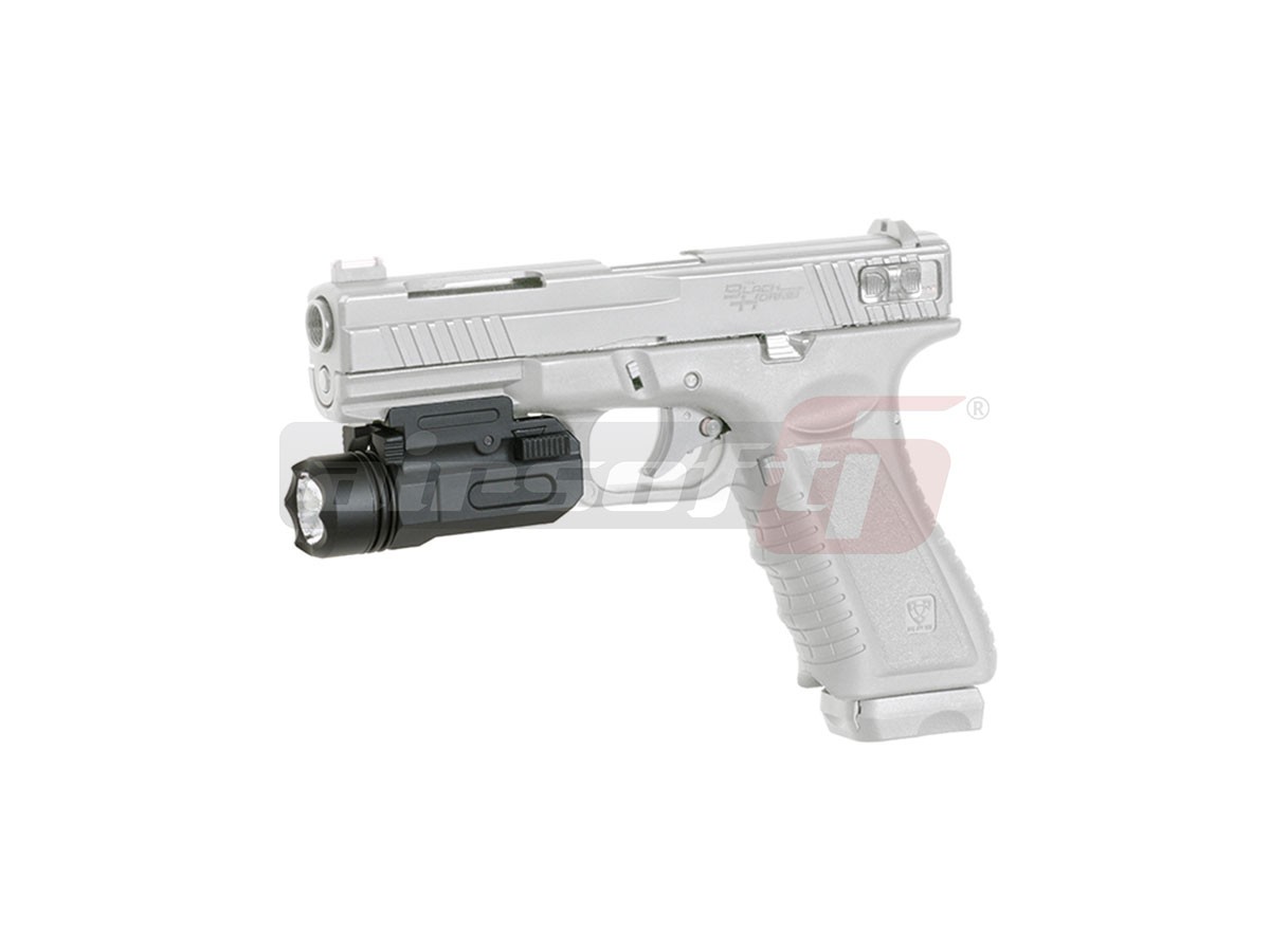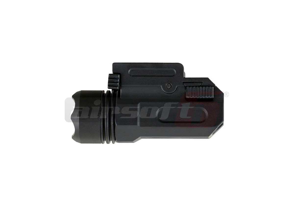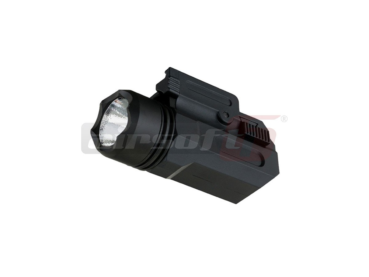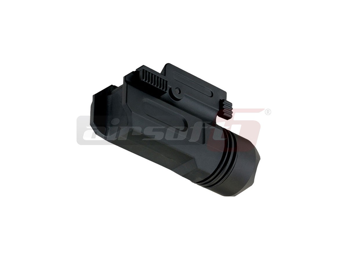 Aceasta lanterna fabricatie ACM este destinata replicilor de pistol pentru airsoft. Este fabricata din ABS de buna calitate si se poate monta pe sine standard 20-22mm. Pintenul de asigurare are doua pozitii si poate chiar fi indepartat de tot. In partea din fata exista capacul compartimentului pentru baterii. Pentru alimentarea lanternei este necesara o baterie CR123A. Butonul pentru pornirea lanternei este amplasat in partea din spate, pe capacul dispozitivului si poate fi actionat pe ambele parti ale lui. Toate elementele ce se pot demonta sunt prevazute cu garnituri de etansare, astfel, lanterna ofera un grad marit de rezistenta impotriva umezelii. Lanterna ofera un singur tip de fascicul si intensitate.