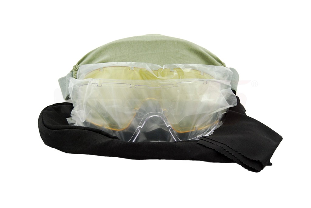 Ochelari de protectie anti fragmente replica Locust. Acesti ochelari sunt creati special pentru a imbunatati confortul si protectia utilizatorului in momentul exploatarii. Pot fi purtati cu sau fara casca. Ochelarii sunt fabricati din plastic oferind o protectie sporita chiar si in cele mai dificile situatii. Rama ochelarilor este fabricata din plastic PVC iar cureaua de prindere este elastica si reglabila. Pentru protectia ochelarilor pe timpul nefolosirii se poate folosi materialul de protectie ce se regaseste pe circumferinta curelei. Lentilele sunt usor inlocuibile, astfel in pachet se regasesc 3 culori: Alb, Galben si Fumurii cu protectie UV.