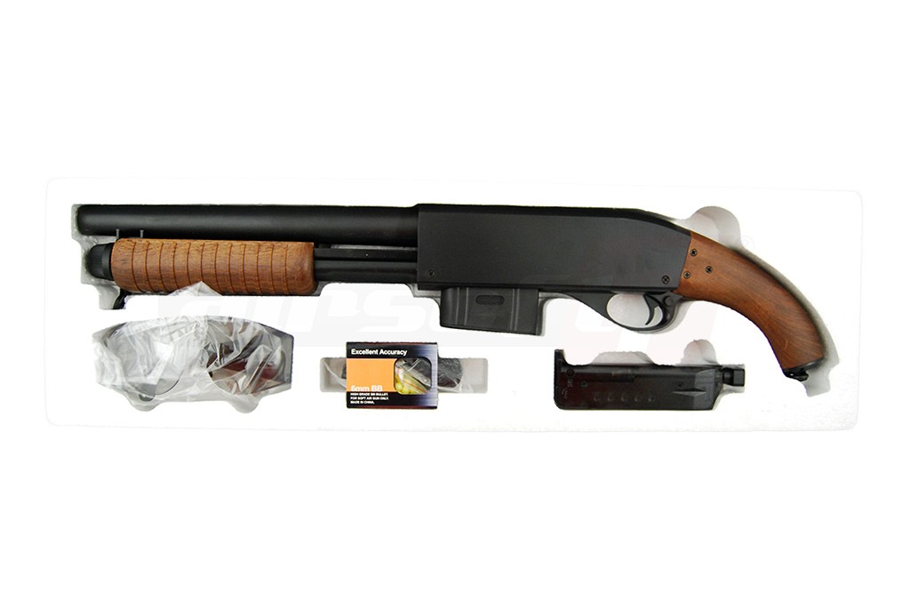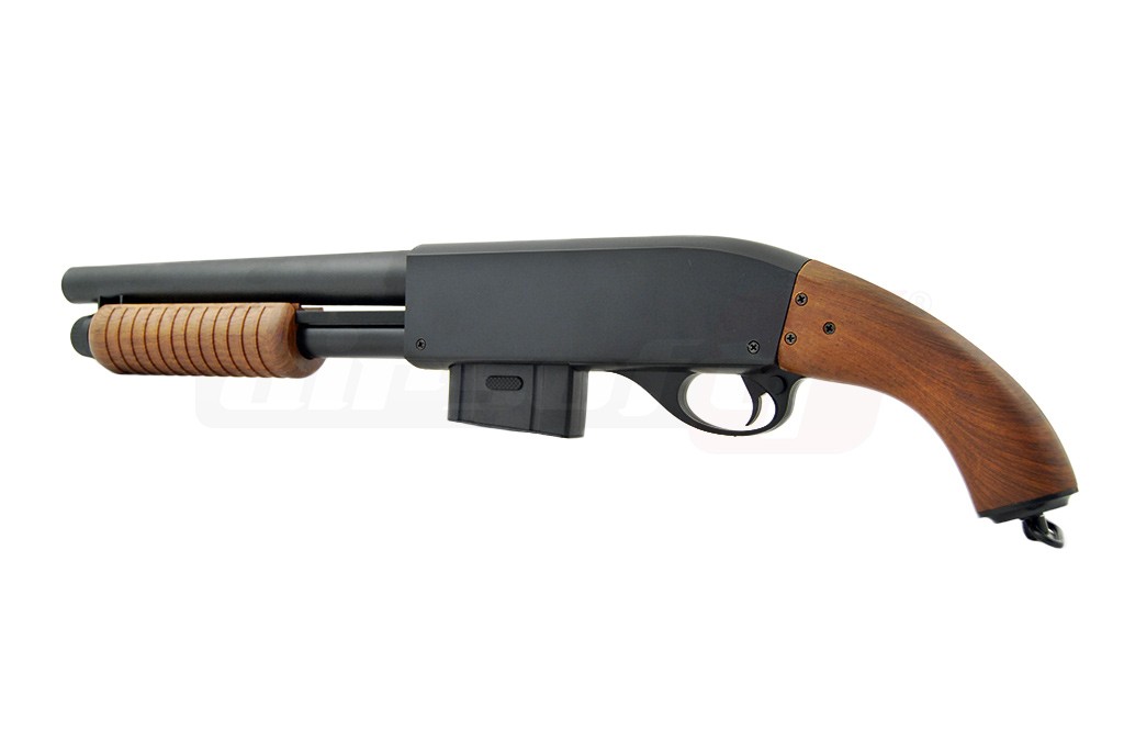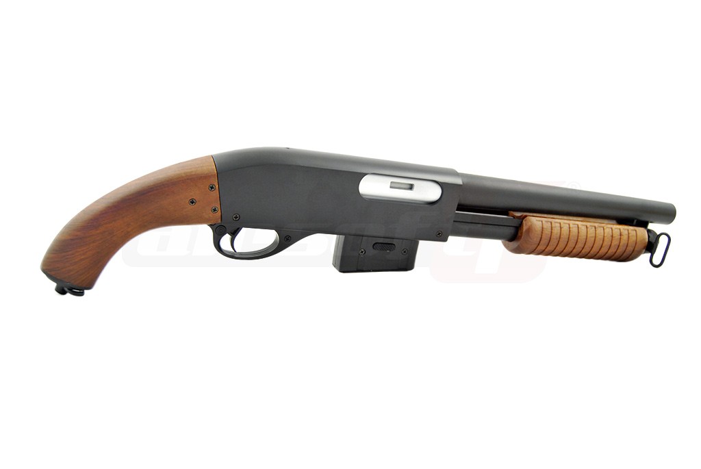 Replica de airsoft prezenta copiaza modelul M870 Sawed Off sau mai exact versiunea taiata a lui M870. Este fabricata din plastic ABS. Principiul sau de functionare copiaza foarte bine arma adevarata, la fiecare armare o bila este alimentata care ulterior poate fi actionata. Un principiu simplu, eficient si foarte economic.