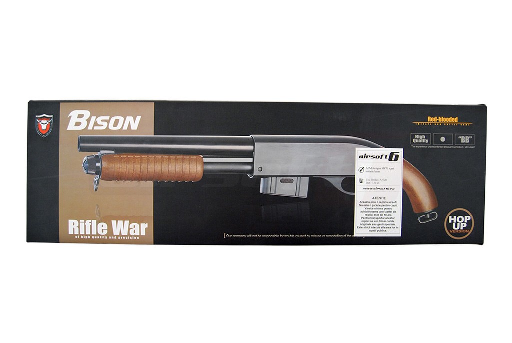 Modelul M870 fabricatie ACM este bazat pe un model cunoscut in intreaga lume, Remington 870 "Wingmaster", aparut in anul 1950 devenind foarte repede popular in America. Este utilizat in multe domenii de activitate; vanatoare, militar, forte de ordine si multe altele. Exista nenunmarate versiuni si adaptari ale acestei platforme. Principiul replicii de airsoft copiaza mult principiul armei adevarate. Pentru fiecare armare poate fi angajata o bila. Puterea necesara este rezultata din comprimarea unui arc intern.