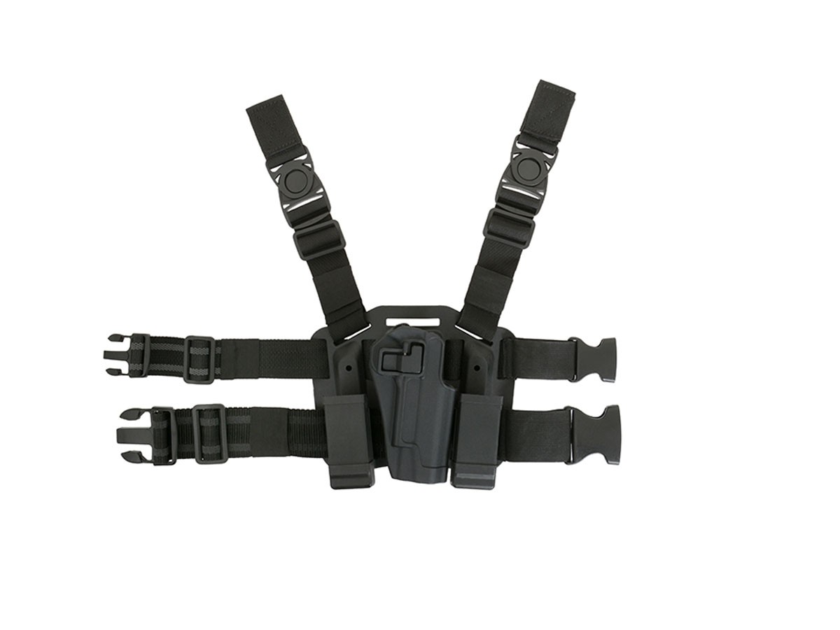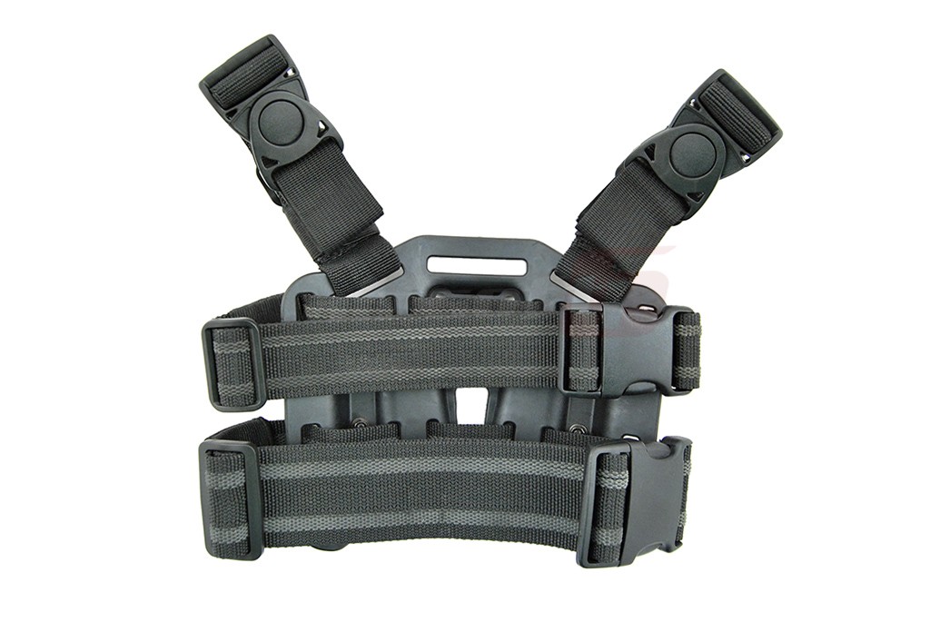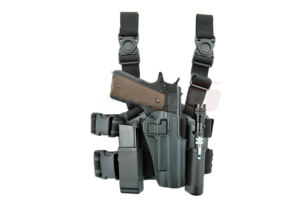 Toc pentru pistol 1911 dar si alte derivate asemanatoare ca forma. Avantajele de baza al acestui toc sunt posibilitatea de fixare ferma pe picior datorita platformei rigide si modularitatea oferita de componentele aflate in pachet. In partea superioara tocul se asigura de centura cu ajutorul a doua chingi reglabile prevazute cu carabina cu detasare rapida din plastic. Partea inferioara se asigura tot cu ajutorul a doua chingi din nylon moale deasemenea reglabile si prevazute cu carabina din plastic. Replica este bine fixata in tocul propriu-zis datorita formei fixe iar ca asigurare exista o clapeta in dreptul ltragaciului ce face aproape imposibil extractia pistolului fara actionarea acestei piedici. In pachet sunt incluse si doua prinderi ce permit fixarea tocului direct pe centura de la pantaloni. Tocul pistolului se fixeaza pe prinderi cu ajutorul a 3 suruburi.