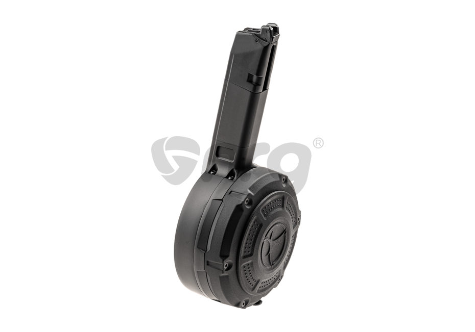 Action Army ne pune la dispozitie un incarcator pentru platforma AAP01 cu o capacitate impresionanta de 350 de bile. Si posibilitatea de inmagazinare a gazului este impresionanta. Este realizat din plastic in partea de jos si metal in partea superioara.