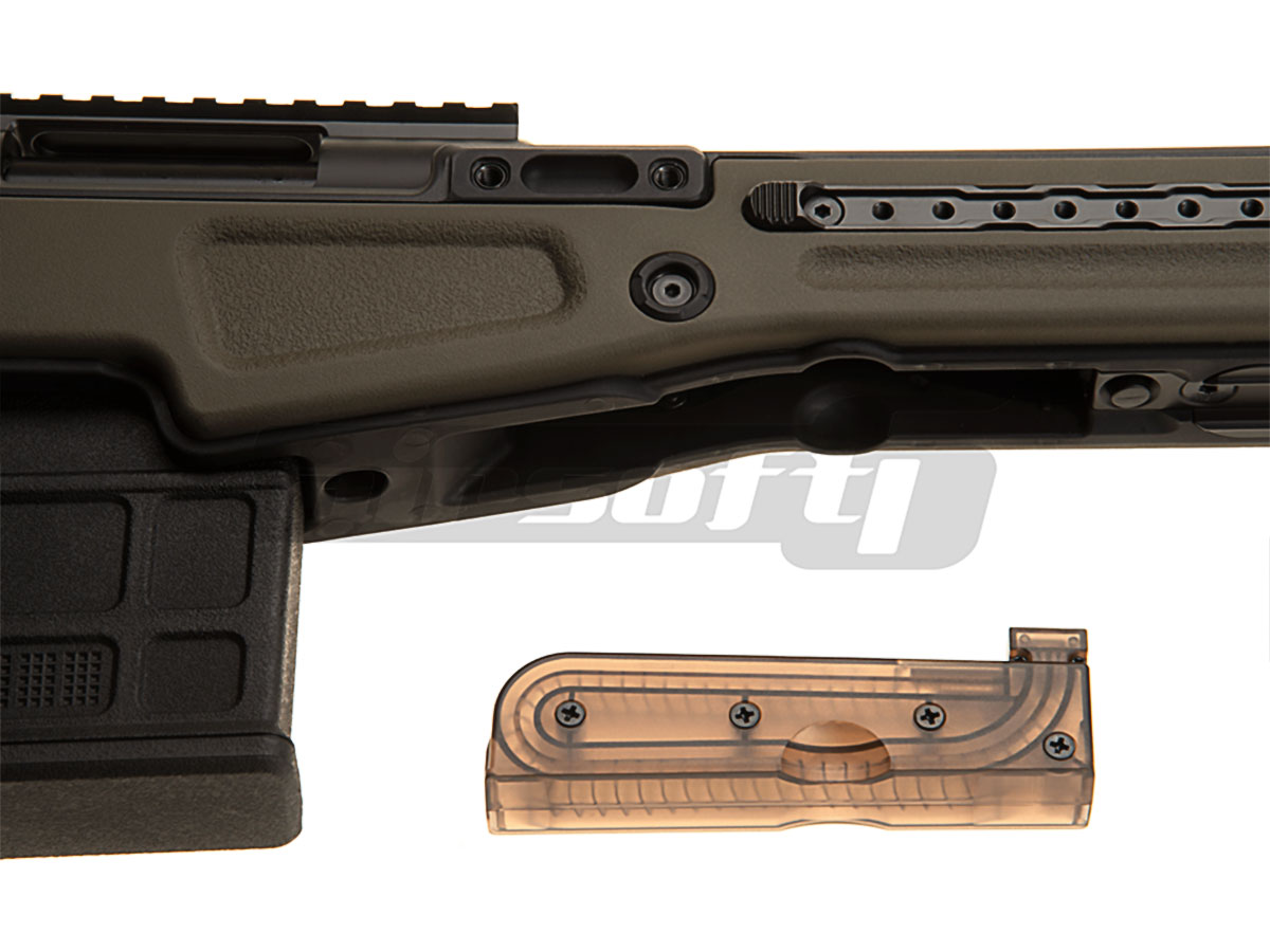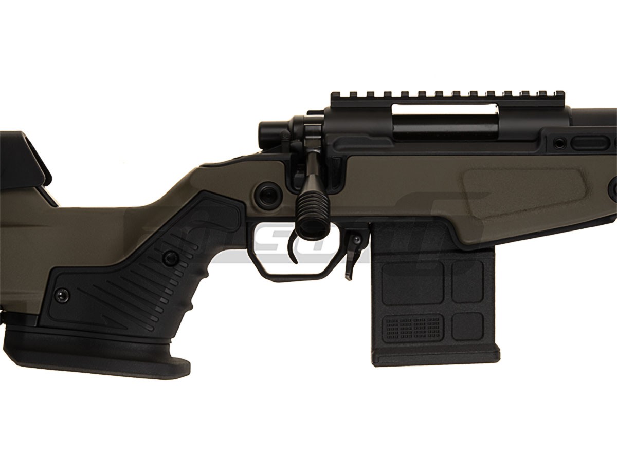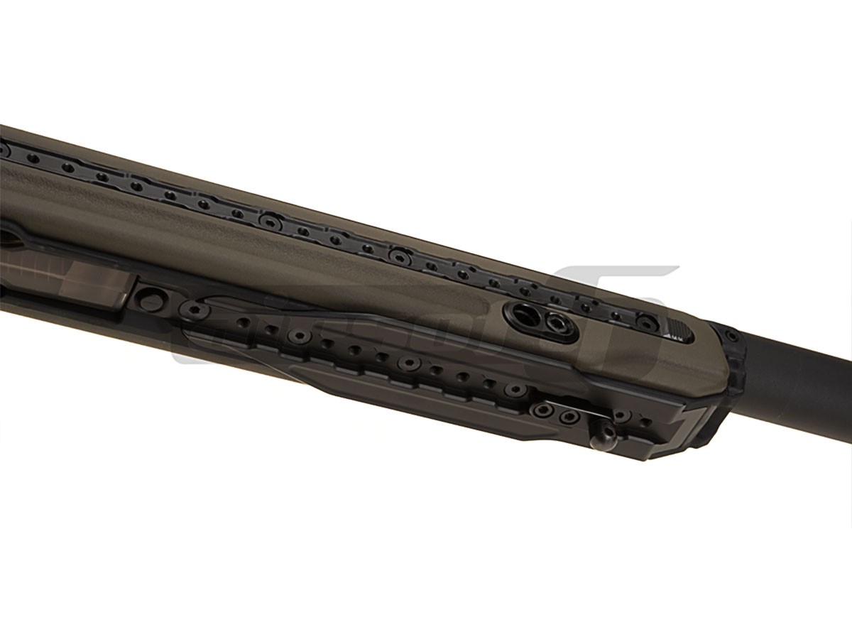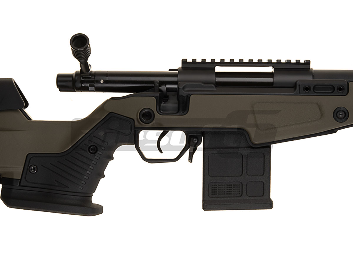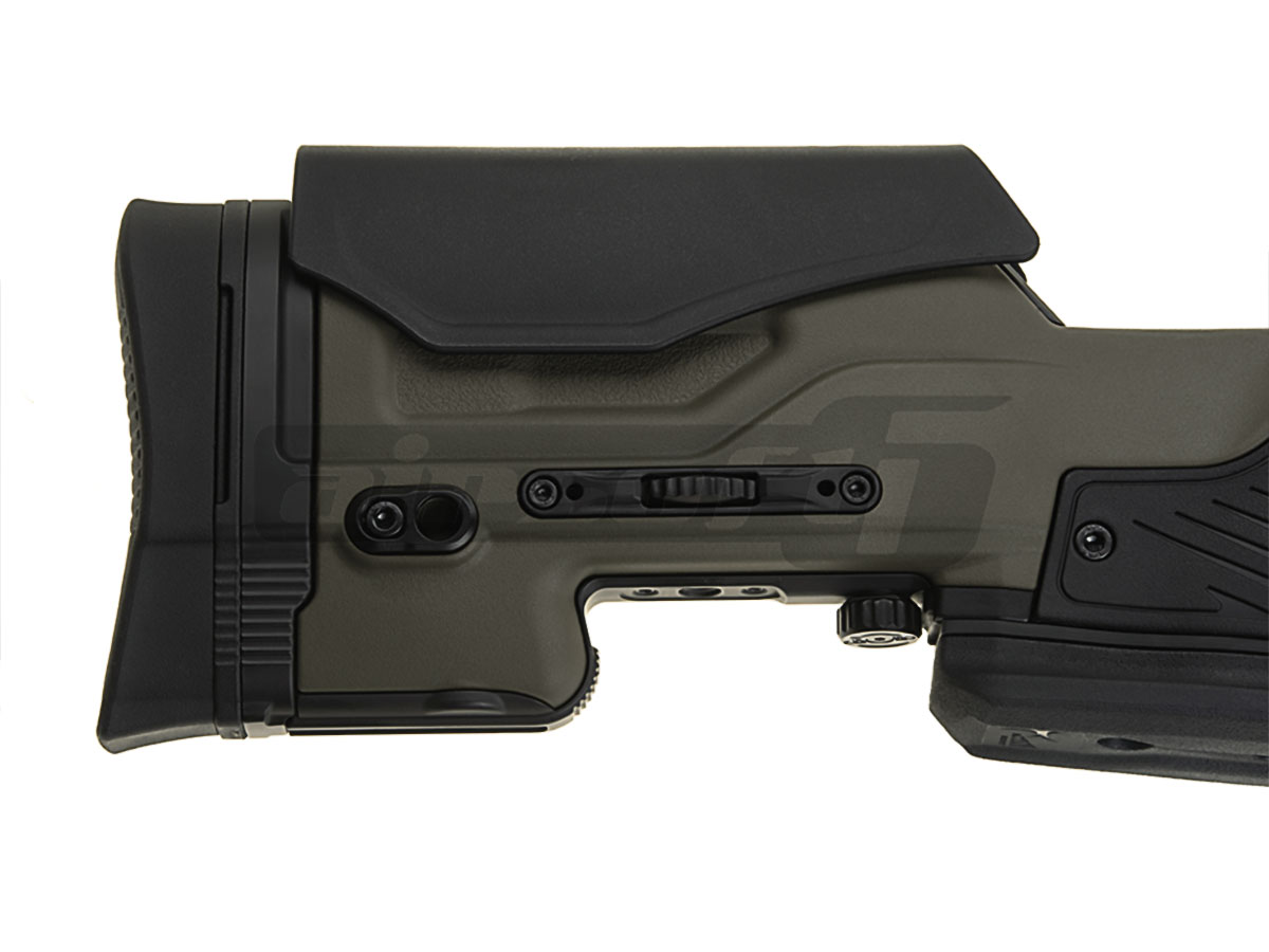 Inca din primele priviri ne putem da usor seama ca nu avem de-aface cu un sniper banal ci cu un model high end, menit sa ofere jucatorilor de airsoft un raport calitate pret exceptional. Corpul sau este realizat din fibra de nylon si are sectiuni din cauciuc pentru o mai buna manipulare. Atat patul cat si obrazarul sunt reglabile, pentru a putea oferi un confort sporit indiferent de marimile utilizatorului. Pozitia de tragere este una extrem de confortabila.