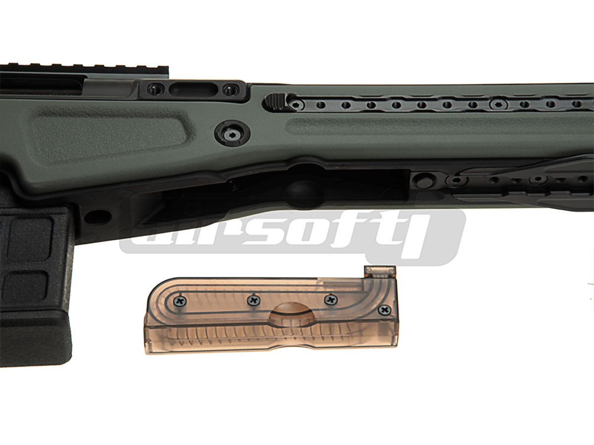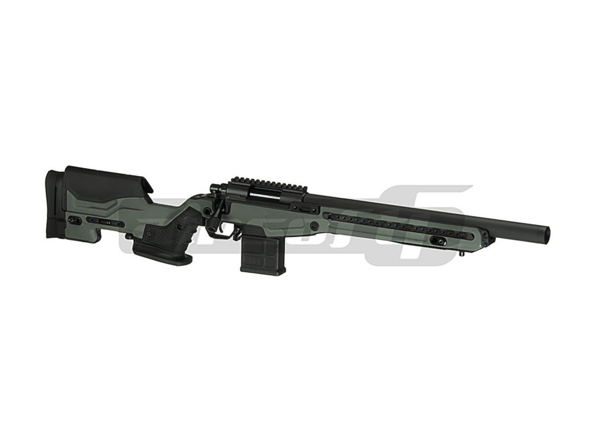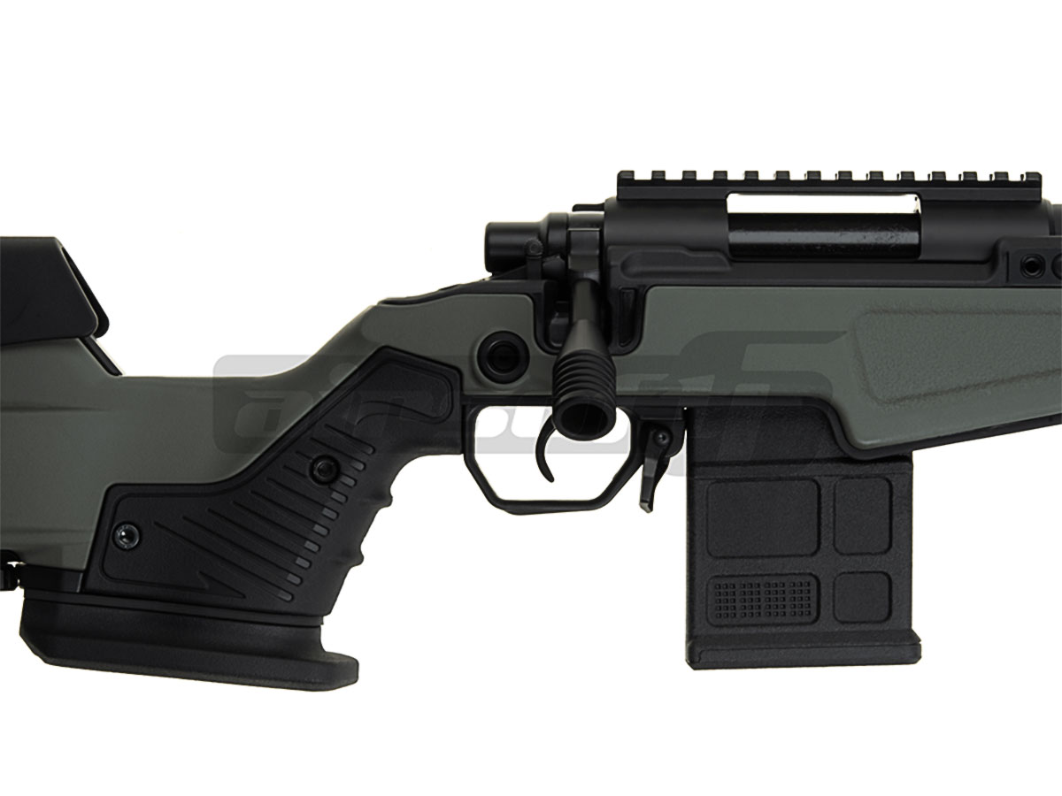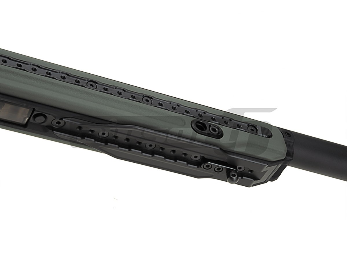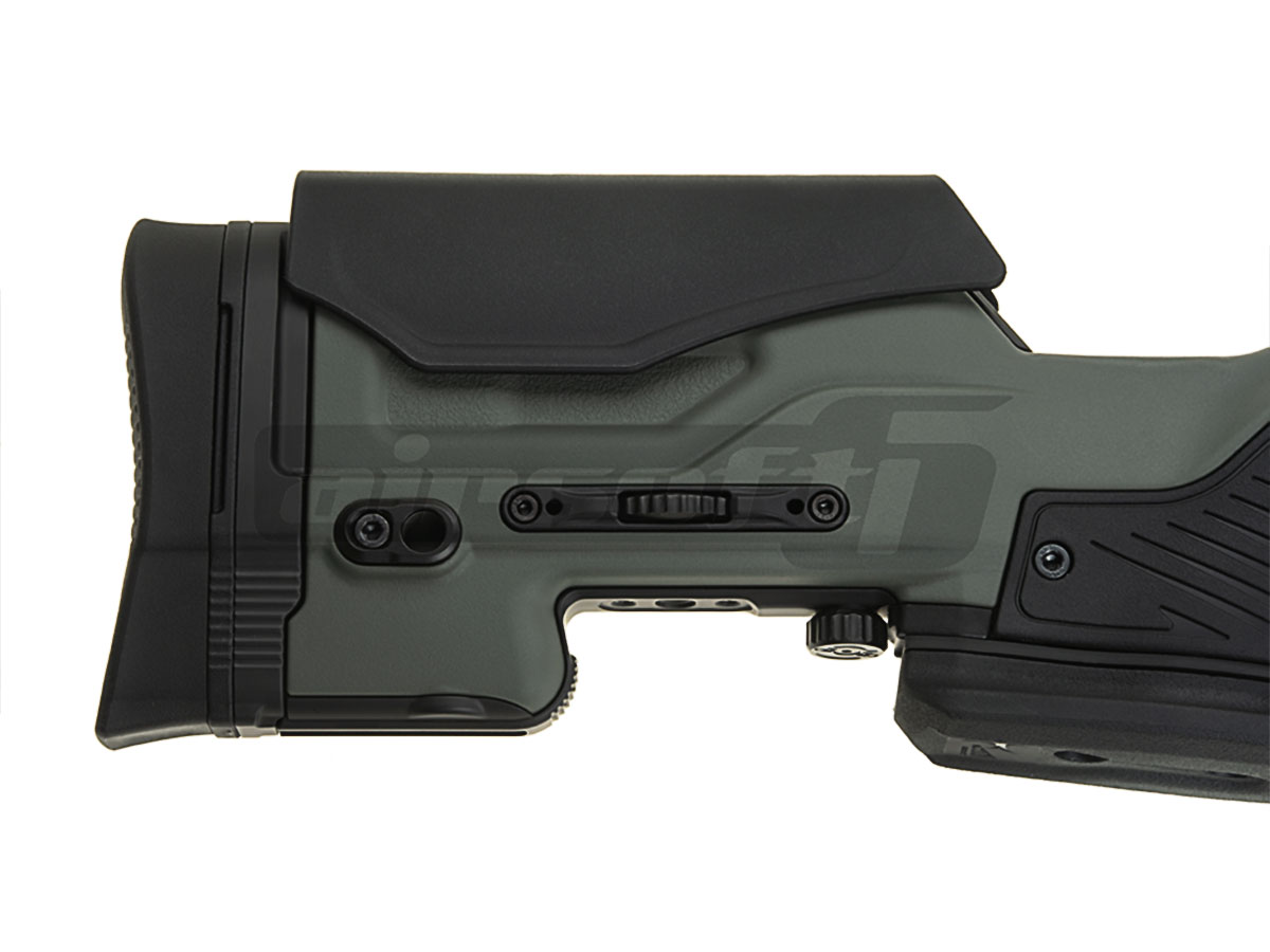 Inca din primele priviri ne putem da usor seama ca nu avem de-aface cu un sniper banal ci cu un model high end, menit sa ofere jucatorilor de airsoft un raport calitate pret exceptional. Corpul sau este realizat din fibra de nylon si are sectiuni din cauciuc pentru o mai buna manipulare. Atat patul cat si obrazarul sunt reglabile, pentru a putea oferi un confort sporit indiferent de marimile utilizatorului. Pozitia de tragere este una extrem de confortabila.