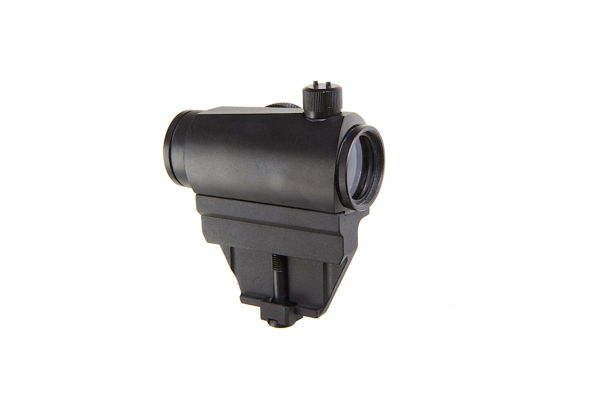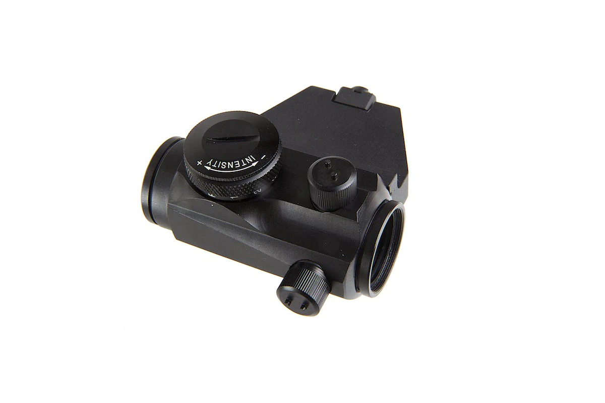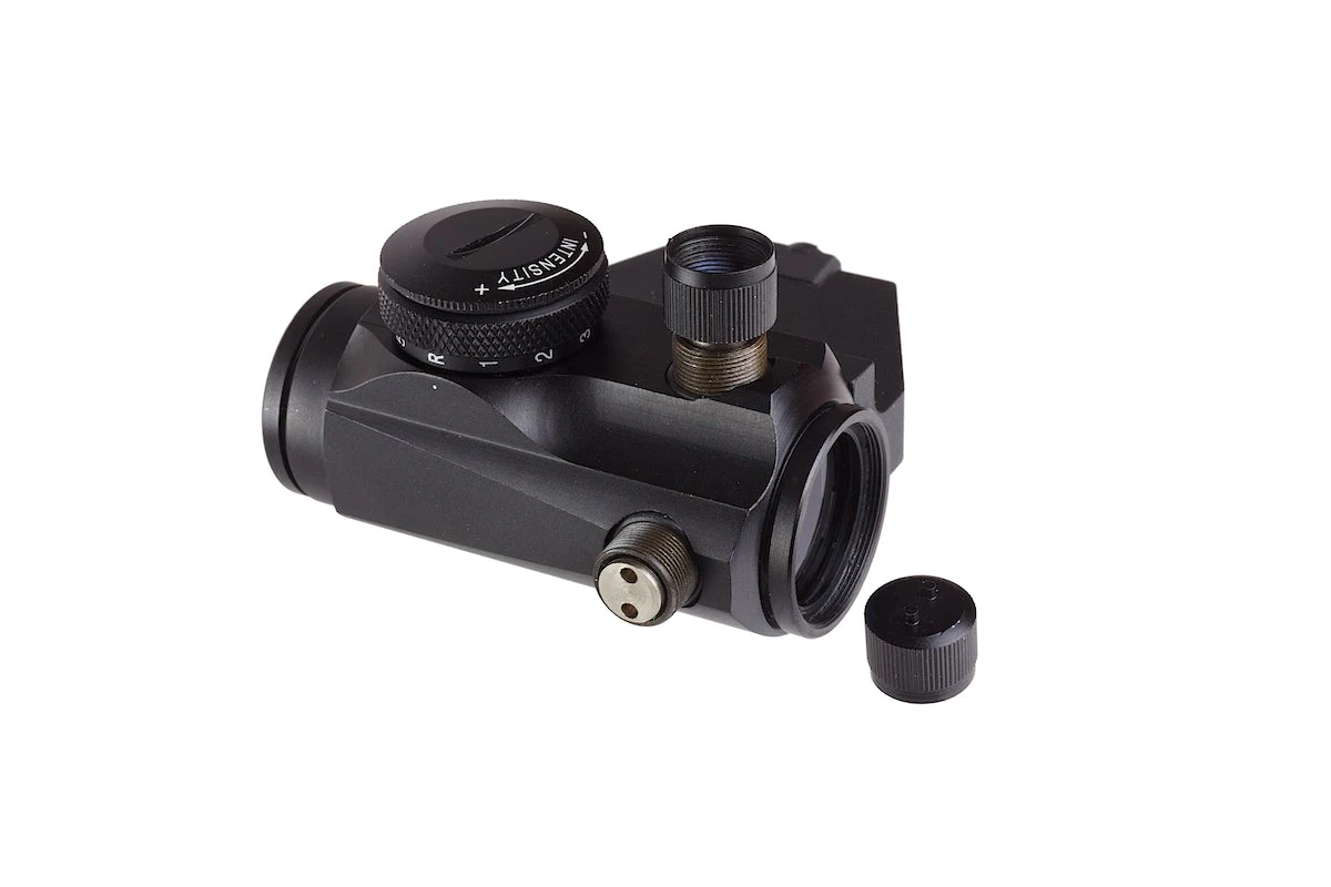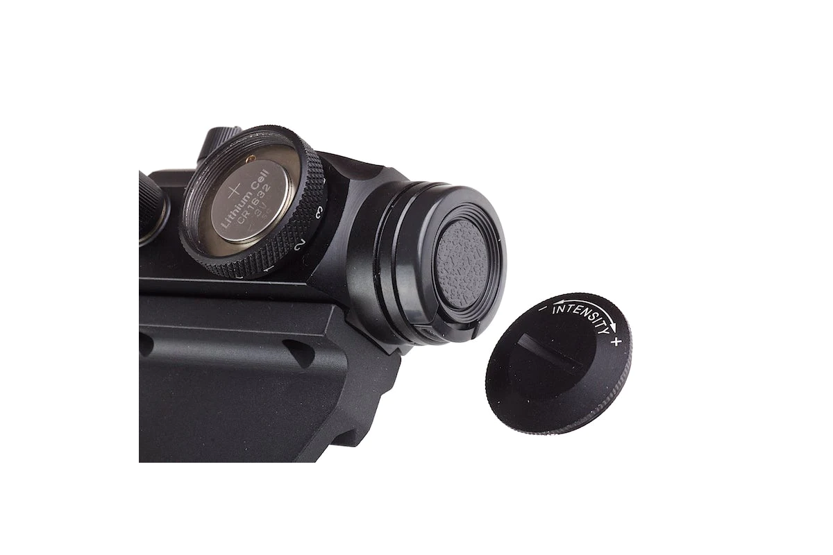 Acest dispozitiv fabricat de Aim-O permite o ochire mai usoara in momentul utilizarii replicilor de airsoft. Este fabricat din aluminiu, reducand greutatea dar pastrand rezistenta. In partea lateral dreapta si in partea superioara exista suruburi de reglaj protejate cu capace menite pentru reglajul dispozitivului. Atentie sa nu le pierdeti deoarece fara aceste capace reglajul va fi mult mai dificil. Pentru alimentare este utilizata o baterie de tip CR1632 3V inmagazinata in interiorul comutatorului pentru ON/OFF si intensitate, amplasat in partea dreapta a dispozitivului. Punctul luminos este rosu sau verde cu mai multe intensitati luminice.