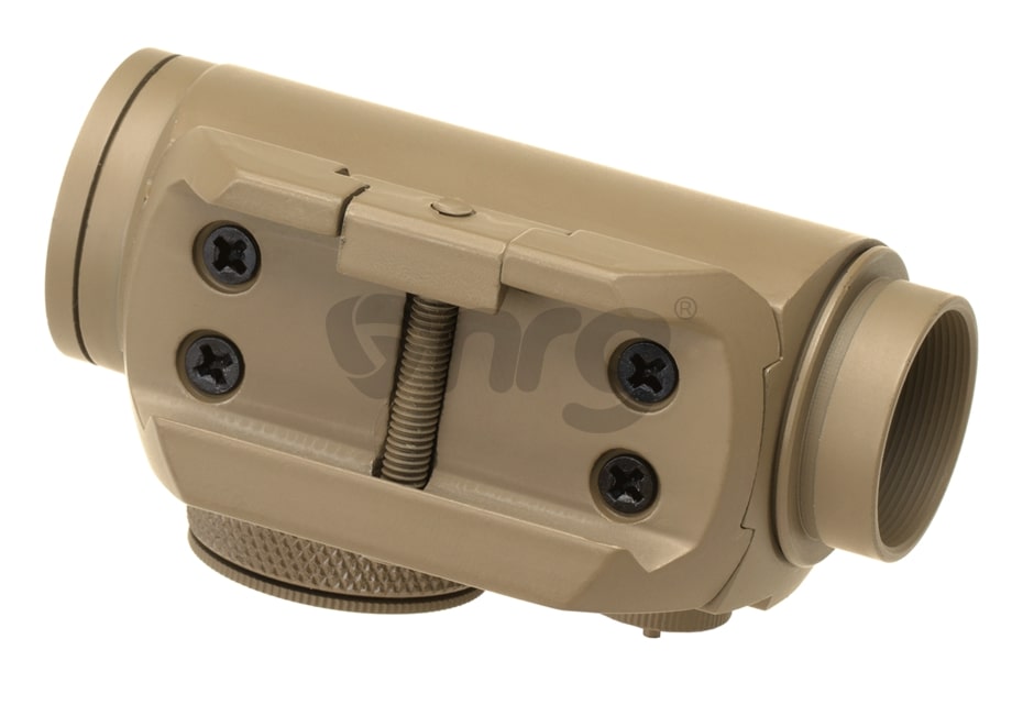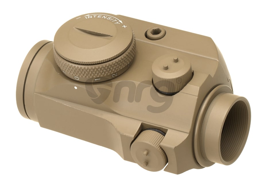 Acest dispozitiv fabricat de Aim-O permite o ochire mai usoara in momentul utilizarii replicilor de airsoft. Este fabricat din aluminiu, reducand greutatea dar pastrand rezistenta. In partea lateral dreapta si in partea superioara exista suruburi de reglaj protejate cu capace menite pentru reglajul dispozitivului. Atentie sa nu le pierdeti deoarece fara aceste capace reglajul va fi mult mai dificil. Pentru alimentare este utilizata o baterie de tip CR1632 3V inmagazinata in interiorul comutatorului pentru ON/OFF si intensitate, amplasat in partea dreapta a dispozitivului. Punctul luminos este rosu, si se poate seta pe oricare din cele 11 pozitii de intensitate.