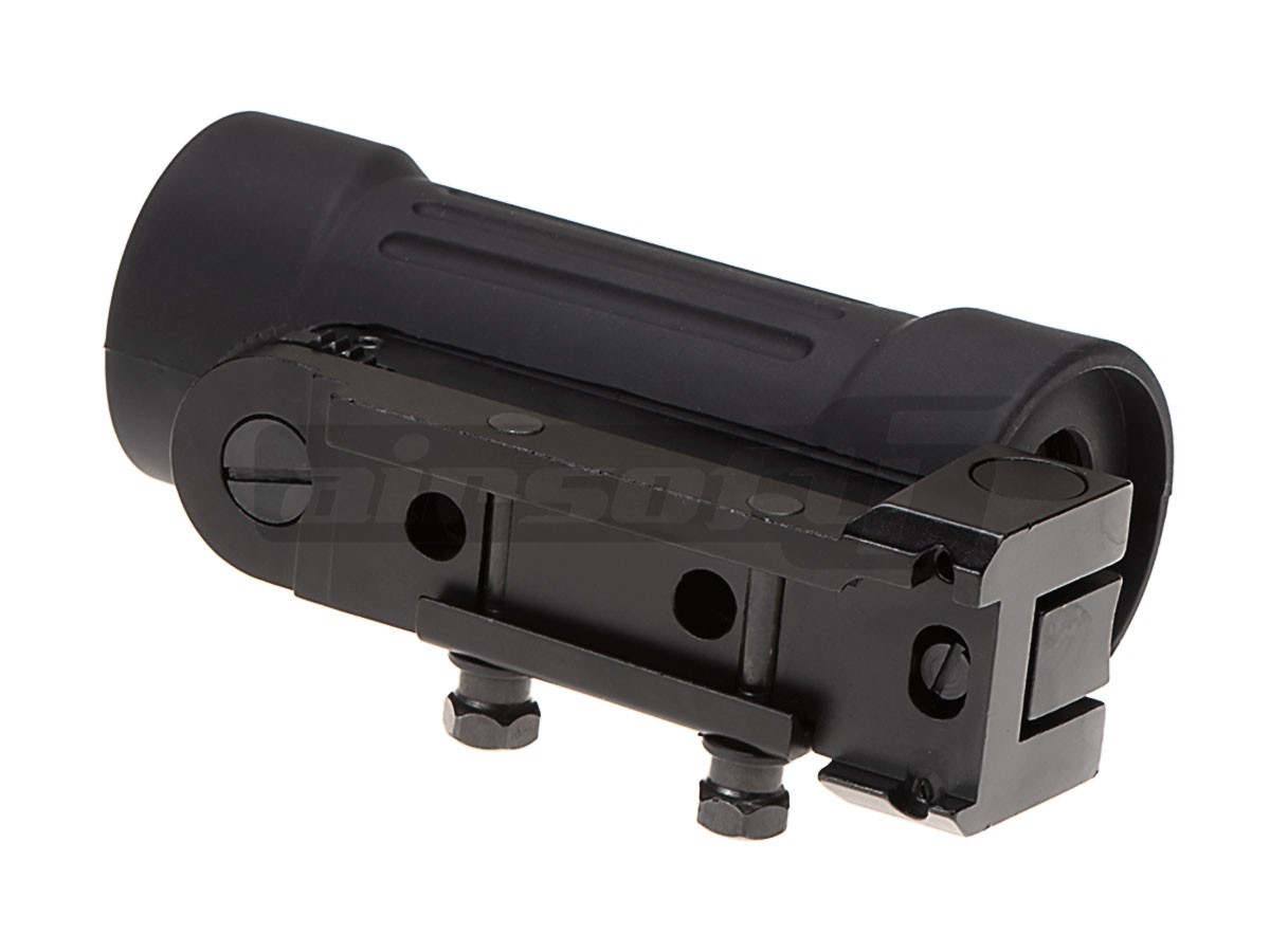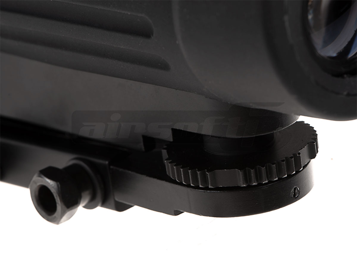 Acest dispozitiv de ochire este fabricat de Aim-O si este destinata replicilor de airsoft. Este fabricat din aluminiu si vopsit electrostatic negru mat si este acoperit de un cauciuc menit sa absoarba diverse socuri. Are o lungime de 165 mm iar tubul central are un diametru de 30 mm. Obiectivul are un diametru intern de 28 mm permitand astfel o claritate buna a imaginii. Fixarea lunetei pe replica este ferma si se realizeaza cu ajutorul celor doua piulite.