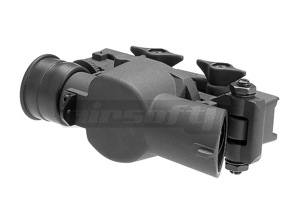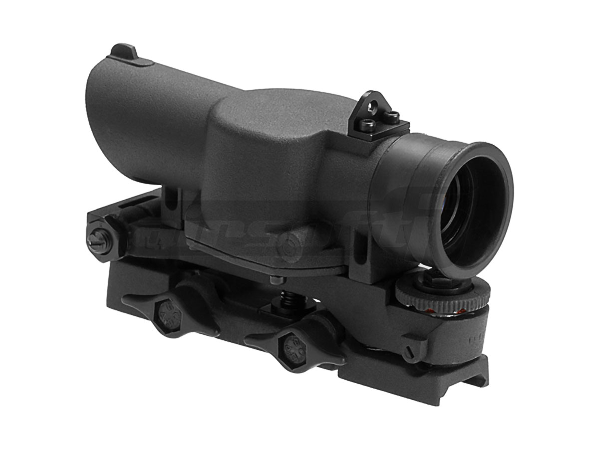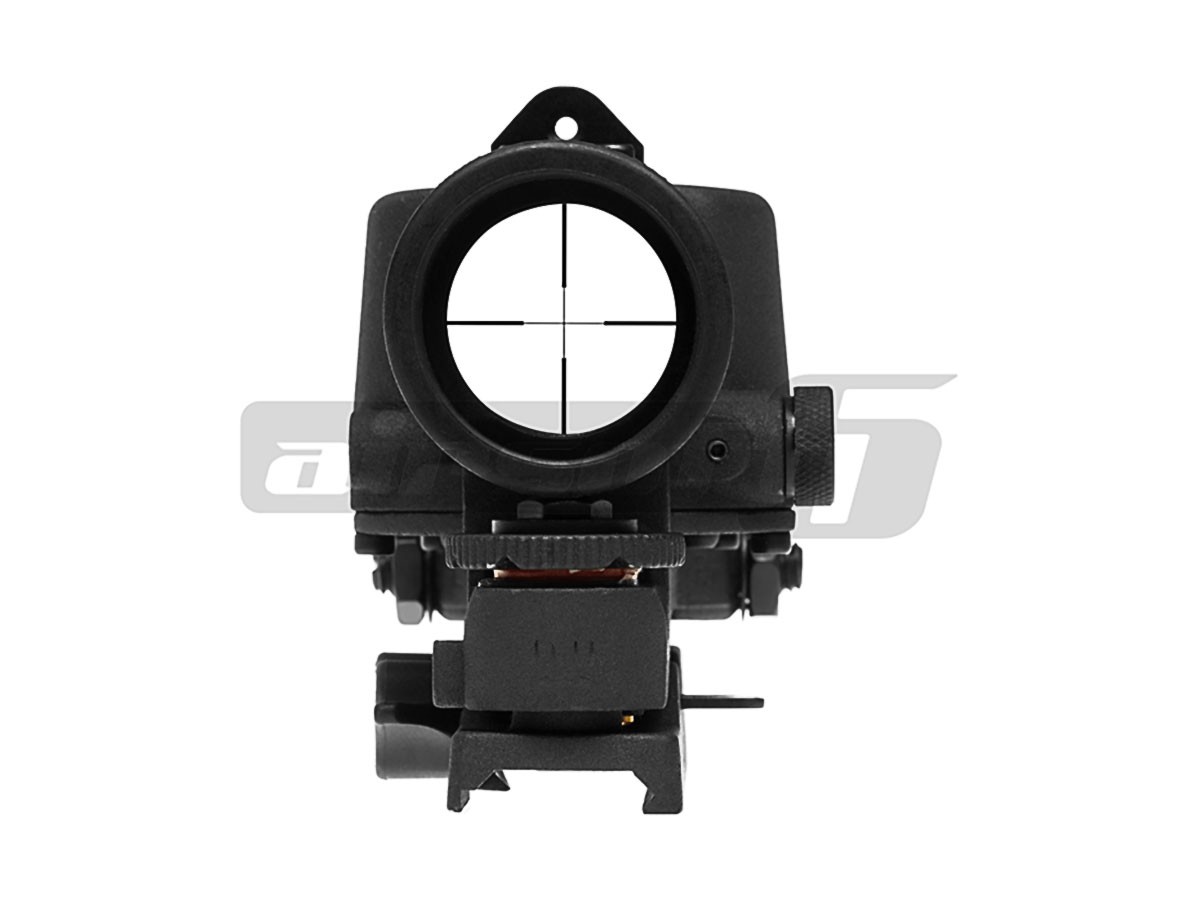 Acest dispozitiv de ochire este fabricat de Aim-O si este destinata replicilor de airsoft. Este fabricat din aluminiu si vopsit electrostatic negru mat si este acoperit de un cauciuc menit sa absoarba diverse socuri. Are o lungime de 145 mm iar tubul central are un diametru de 30 mm. Obiectivul are un diametru intern de 32 mm permitand astfel o claritate buna a imaginii. Fixarea lunetei pe replica este ferma si se realizeaza cu ajutorul celor doua piulite.