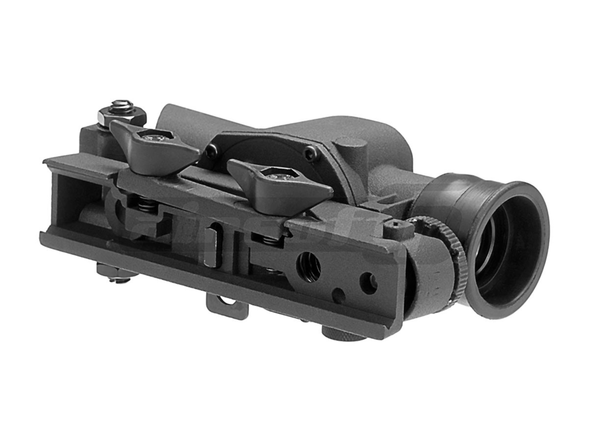 Aceasta luneta prezinta zoom reglabil de 4x. Reglajul dizpozitivului se realizeaza pe inaltime cu ajutorul rotitei amplasata in partea inferioara iar reglajul orizontal cu ajutorul surubului amplasat in partea frontala.