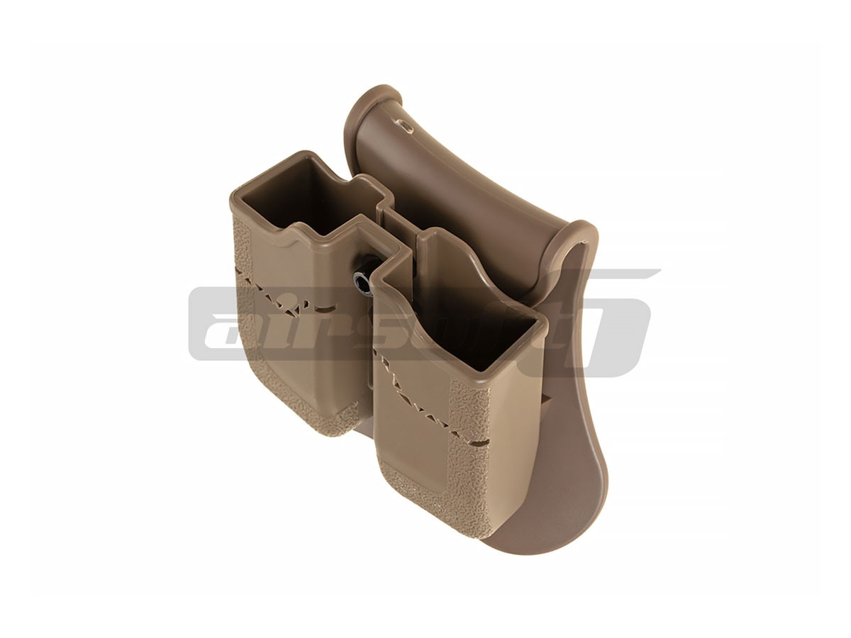 Acest suport rigid permite fixarea a 2 incarcatoare de pistol airsoft platforme PX4/P30/USP. Este fabricat din plastic ABS si este conceput pentru a fi atasat unei centuri. Suporturile incarcatoarelor pot fi modificate rotativ pentru a fi usor accesibile utilizatorului. Avantajul acestor suporti este fixarea mult mai ferma a incarcatoarelor